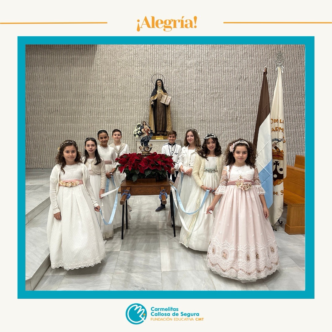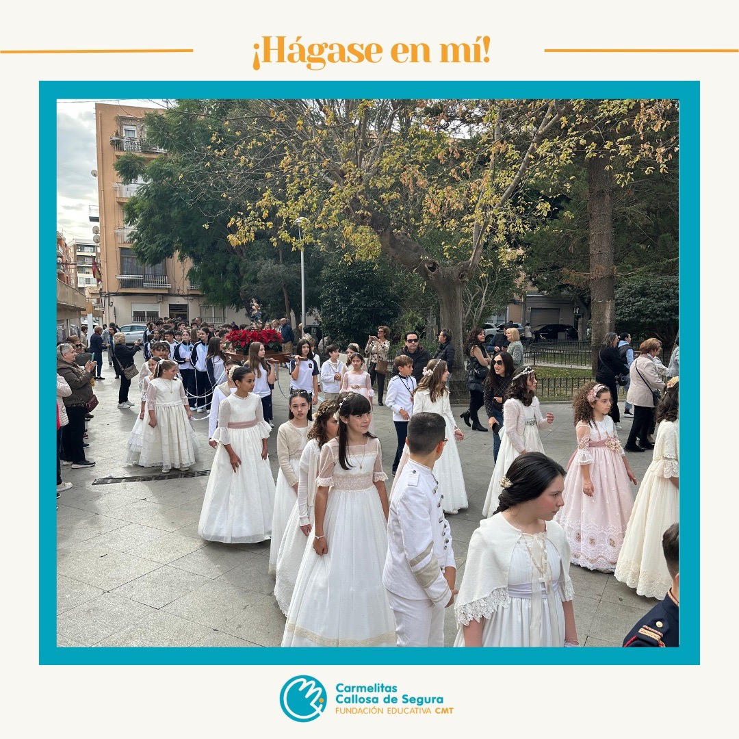Al son de los tambores llega el anuncio del día de nuestra patrona la INMACULADA CONCEPCIÓN. Todos los alumnos de 5º de EP vestidos con sus trajes de comunión bailan para ti con alegría y entusiasmo.