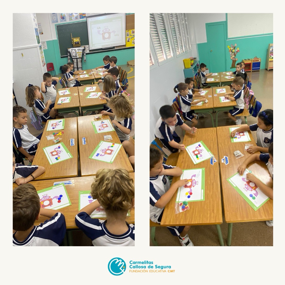 Los alumnos de educación infantil 5 años trabajan el concepto de suma con el “robot de funciones”, a la vez que deben averiguar la regla del robot (n+1).