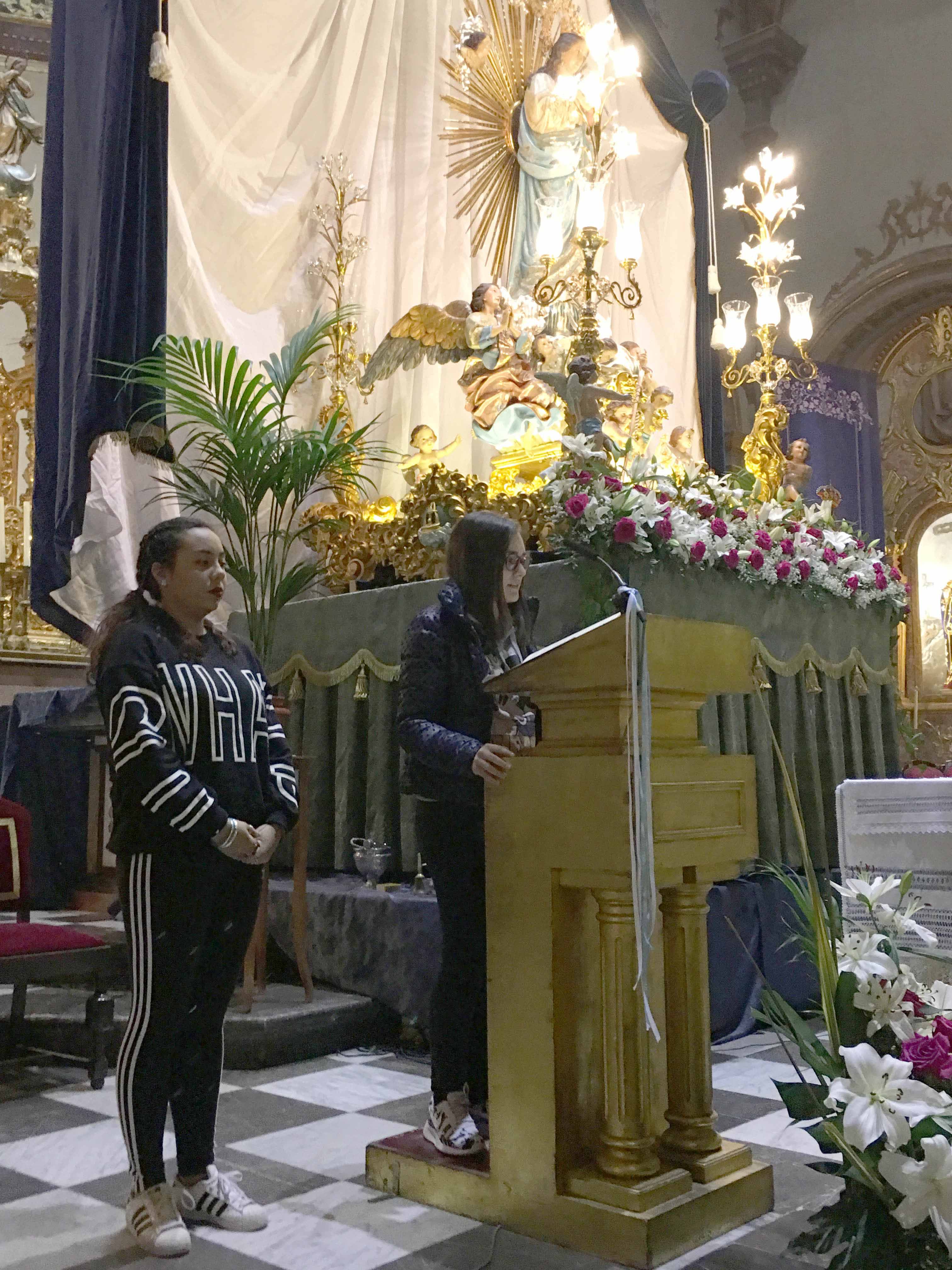El pasado viernes uno de diciembre, en la Arciprestal de San Martín, alumnas y profesoras de Pastoral compartieron una de las más arraigadas tradiciones religiosas callosinas. Macu, Syra, Carmen y Ángela declamaron de forma magistral la novena y las lecturas eucarísticas del tercer día del novenario a Nuestra Madre y titular del colegio, recibiendo multitud de felicitaciones de los allí congregados.
