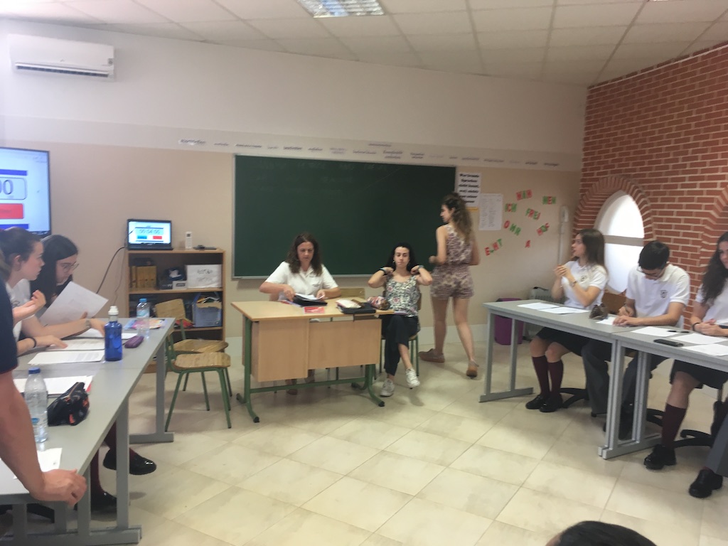 El tema que tenían que debatir era “Banning diesel and petrol cars as a measure against climate change”. Al llegar sorteamos opciones y nos tocó estar a favor de esta afirmación. Paula Salinas comenzó la intervención de nuestro equipo, después Inés Ortiz introdujo los argumentos, a continuación Rocío Gilabert refutó los argumentos del otro equipo y, finalmente, Carlos Rives concluyó nuestra participación.