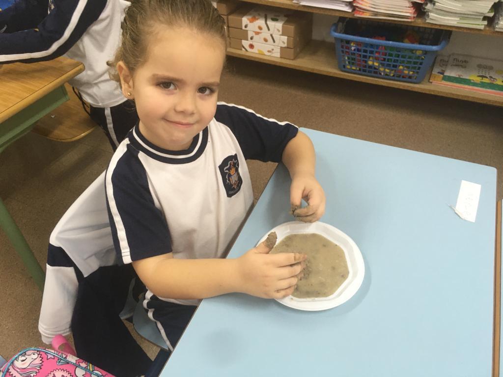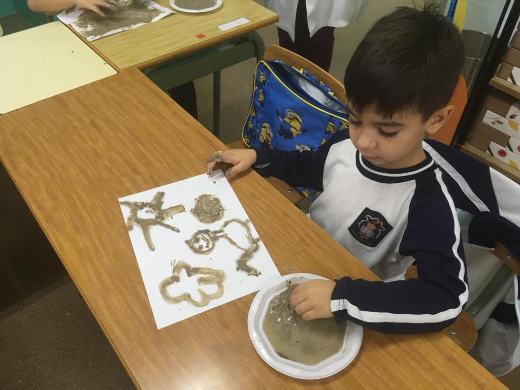 Los alumnos de 5 años han experimentado los diferentes estados del barro con agua.