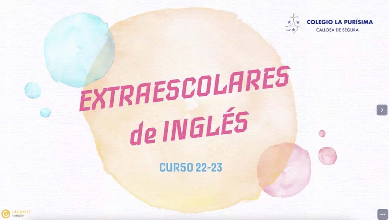 Aquí tenéis toda la información sobre las clases extraescolares de inglés que ofertamos desde el colegio. LAS CLASES COMENZARÁN EN OCTUBRE.