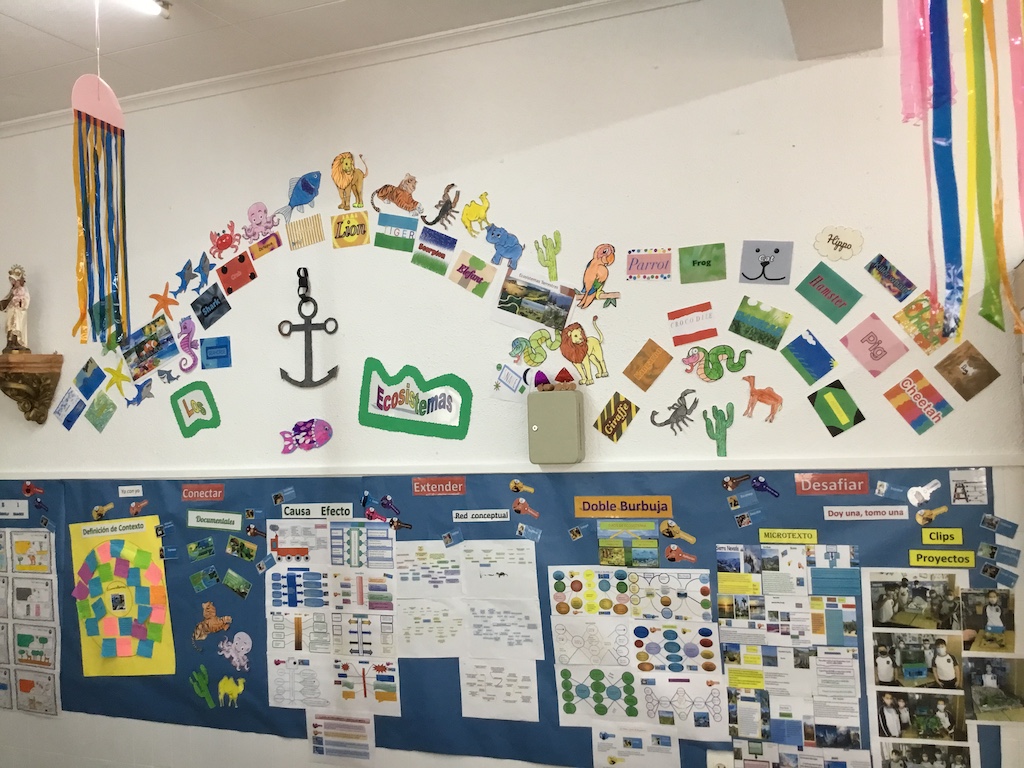 Los alumnos de quinto de Educación Primaria muestran cómo están construyendo una cultura de pensamiento en el aula utilizando la rutina de pensamiento "Conectar - extender - desafiar" para trabajar los ecosistemas de forma interdisciplinar. Para ello han utilizado diversas rutinas de pensamiento, mapas mentales, y han realizado proyectos de distintos tipos de ecosistemas.