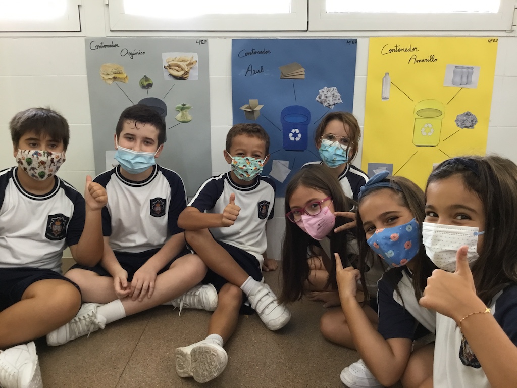 Además, para llevar este aprendizaje medioambiental a la práctica se han instalado en diferentes puntos del colegio contenedores de reciclaje para favorecer la acción activa por parte del alumnado y personal del colegio.