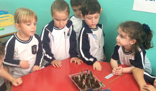 Nuestros alumnos de 4 años descubren, mediante el juego simbólico, el proceso que siguen las frutas y verduras para llegar desde el huerto hasta el plato.