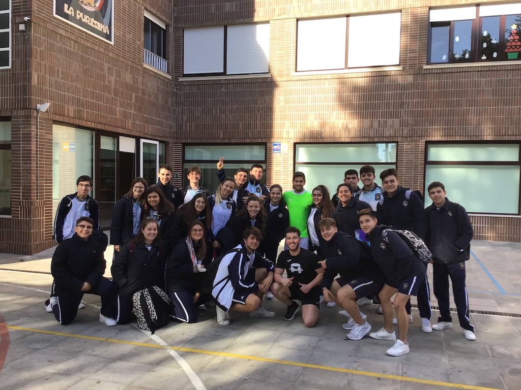 Los alumnos de 3º y 4º ESO del colegio La Purísima han disfrutado de una sesión de entrenamiento funcional adaptado a sus características en nuestro centro. En primer lugar, se les ha proyectado una pequeña presentación donde se les ha informado de los beneficios de realizar ejercicios funcionales, orientados desde el punto de vista de la salud. A continuación, se han desplazado al patio donde han podido poner en práctica diferentes rutinas de entrenamiento, siempre coordinadas y supervisadas por el especialista Alejandro Hernández y el profesor de Educación Física. El objetivo de la actividad era el de ofrecerles a los alumnos la oportunidad de trabajar la capacidad de fuerza de manera saludable y responsable. Por consiguiente, además de lograr el objetivo, se han divertido y han disfrutado de la experiencia deportiva.