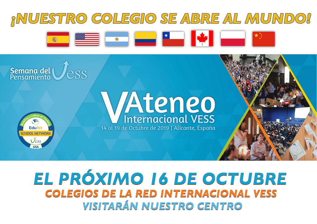 Nuestro colegio será visitado el próximo miércoles 16 de octubre , dentro de la iniciativa ¡VESS EN ACCIÓN! que se enmarca en la Semana del Pensamiento VESS. Este evento se desarrollará durante la próxima semana en la provincia de Alicante y culminará con el V ATENEO VESS, en el que nuestros profesores también desempeñarán un importante papel.