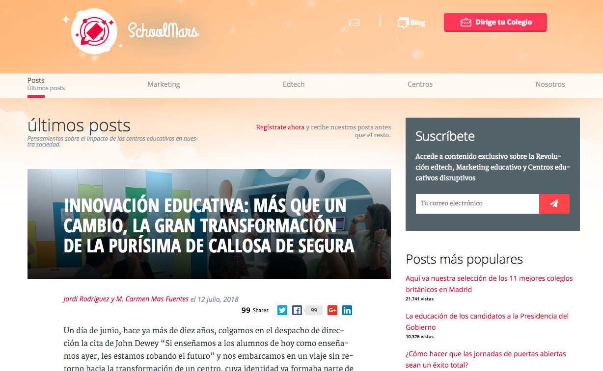 ¡El prestigioso blog educativo de SCHOOLMARS publica un post sobre el proceso de transformación de nuestro colegio!