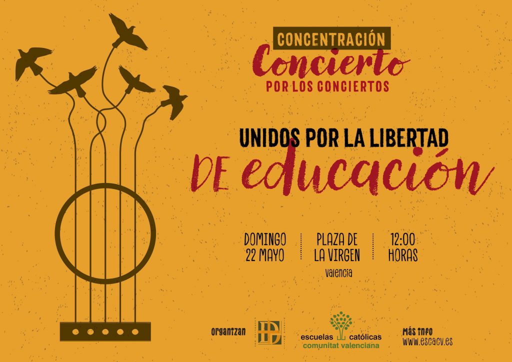 Convocamos a madres, padres, alumnos, profesores y demás personal de los centros a una concentración en defensa de la libertad de enseñanza el próximo domingo 22 de mayo en la Plaza de la Virgen de Valencia.