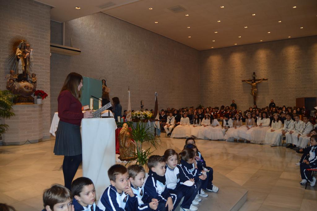 La mañana del día 3 de diciembre la dedicamos a nuestra madre la Inmaculada Concepción. En la capilla del colegio tuvo lugar el tradicional acto mariano en el que todos los alumnos y alumnas de todos los cursos presentaron a María las actividades realizadas en su honor.