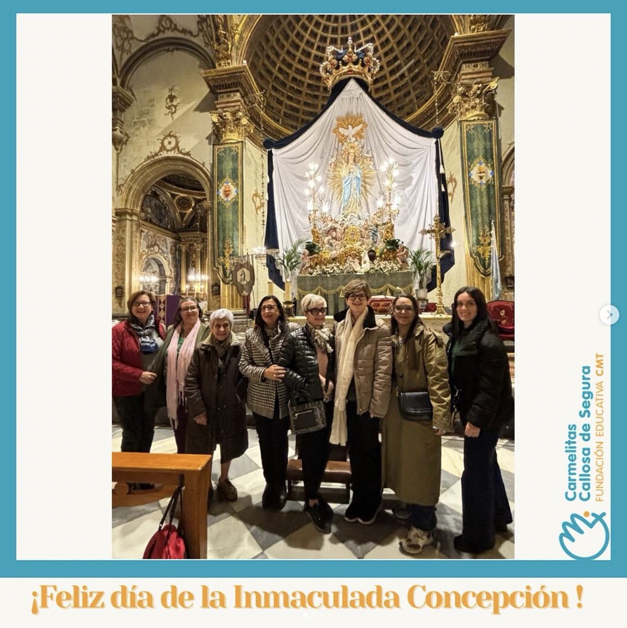 Ya llegan las banderas… nuestros alumnos de 4º de la ESO abren la procesión. Nuestra madre portada a hombros por los alumnos de 2º ESO procesionaria. Nuestros familiares vienen a verte, a pedirte por sus necesidades y a dar gracias.
