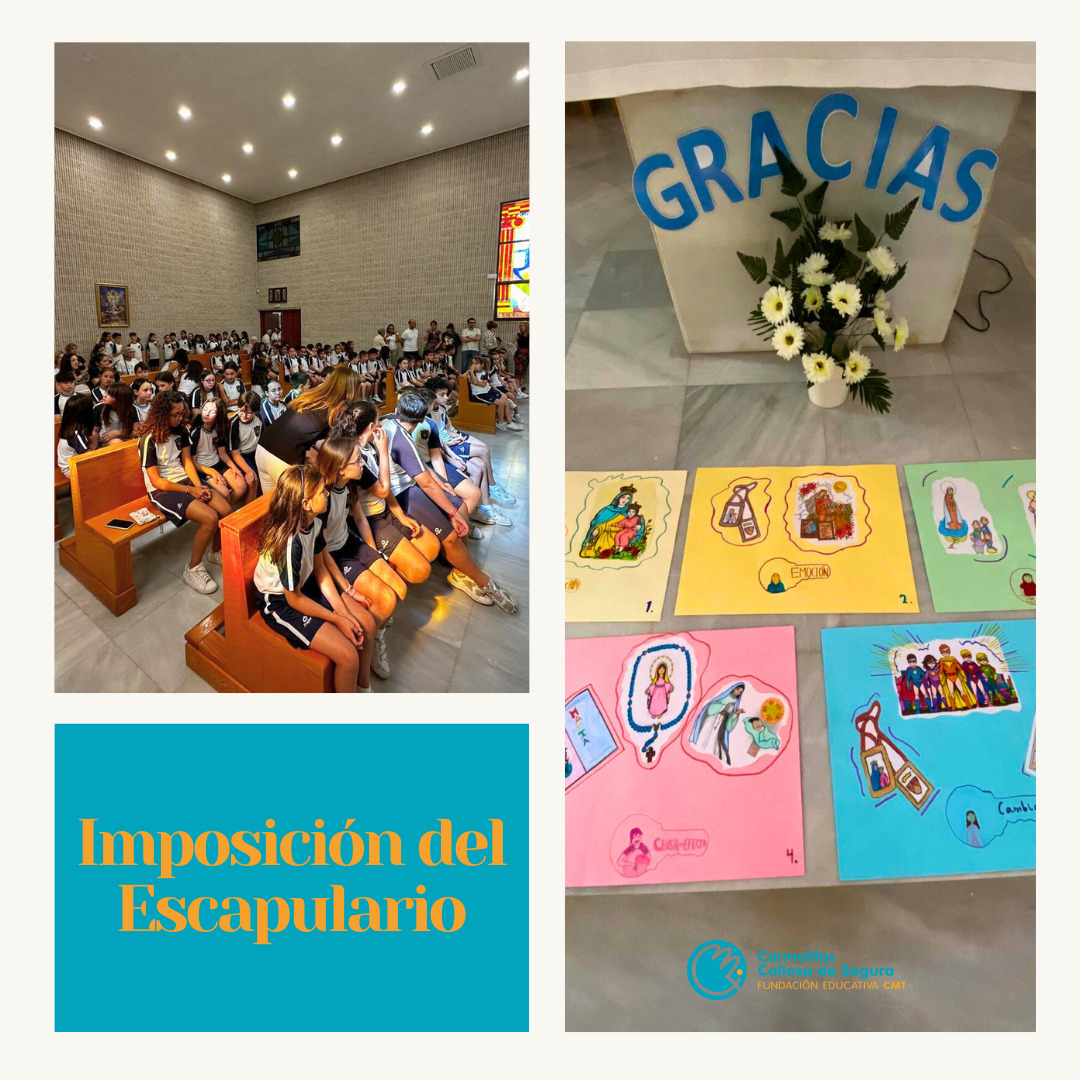 Hoy hemos celebrado la imposición de los escapularios bendecidos a los niños y niñas de nuestro colegio que han realizado la Primera Comunión.