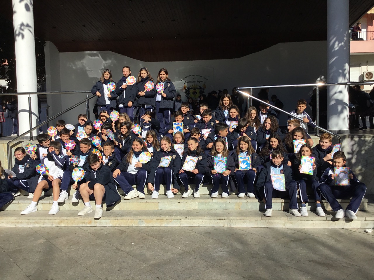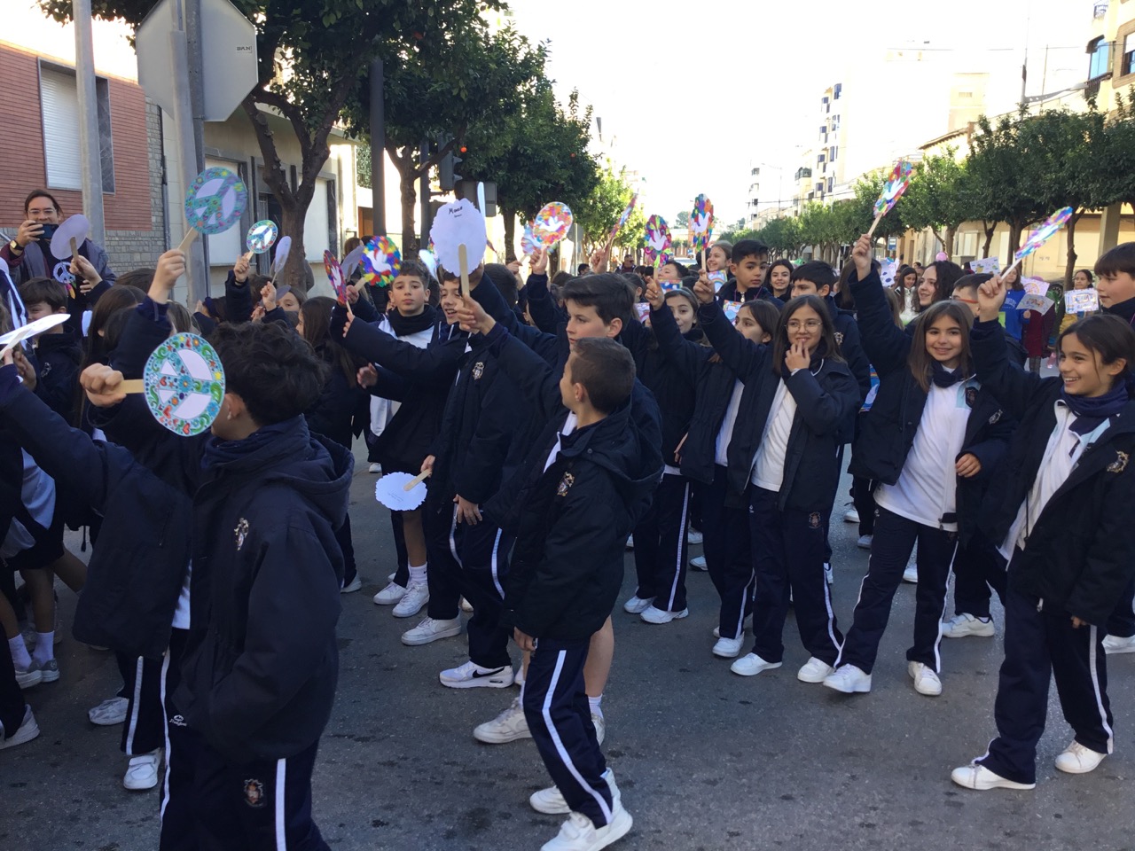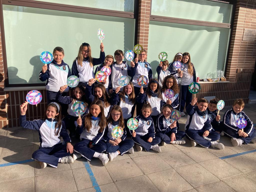 Nuestros alumnos de 3°a 6° de Primaria participaron en la manifestación celebrada por el Ayuntamiento de Callosa con el resto de colegios del municipio. Los alumnos de la ESO crearon carteles con la app de Canva en los cuales escribieron mensajes muy representativos que pretenden concienciar a la gente de la importacia de la paz en el mundo.