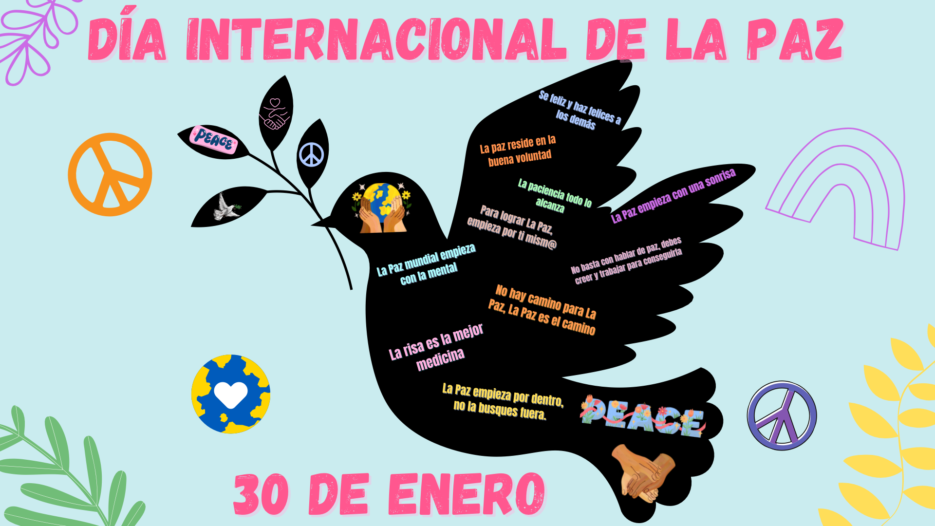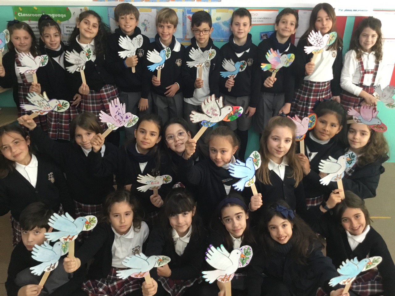 En el día de ayer tuvo lugar la celebración del Día de la Paz en nuestro colegio. Los alumnos de Infantil y Primaria decoraron las clases con actividades manipulativas con motivo de ese día.