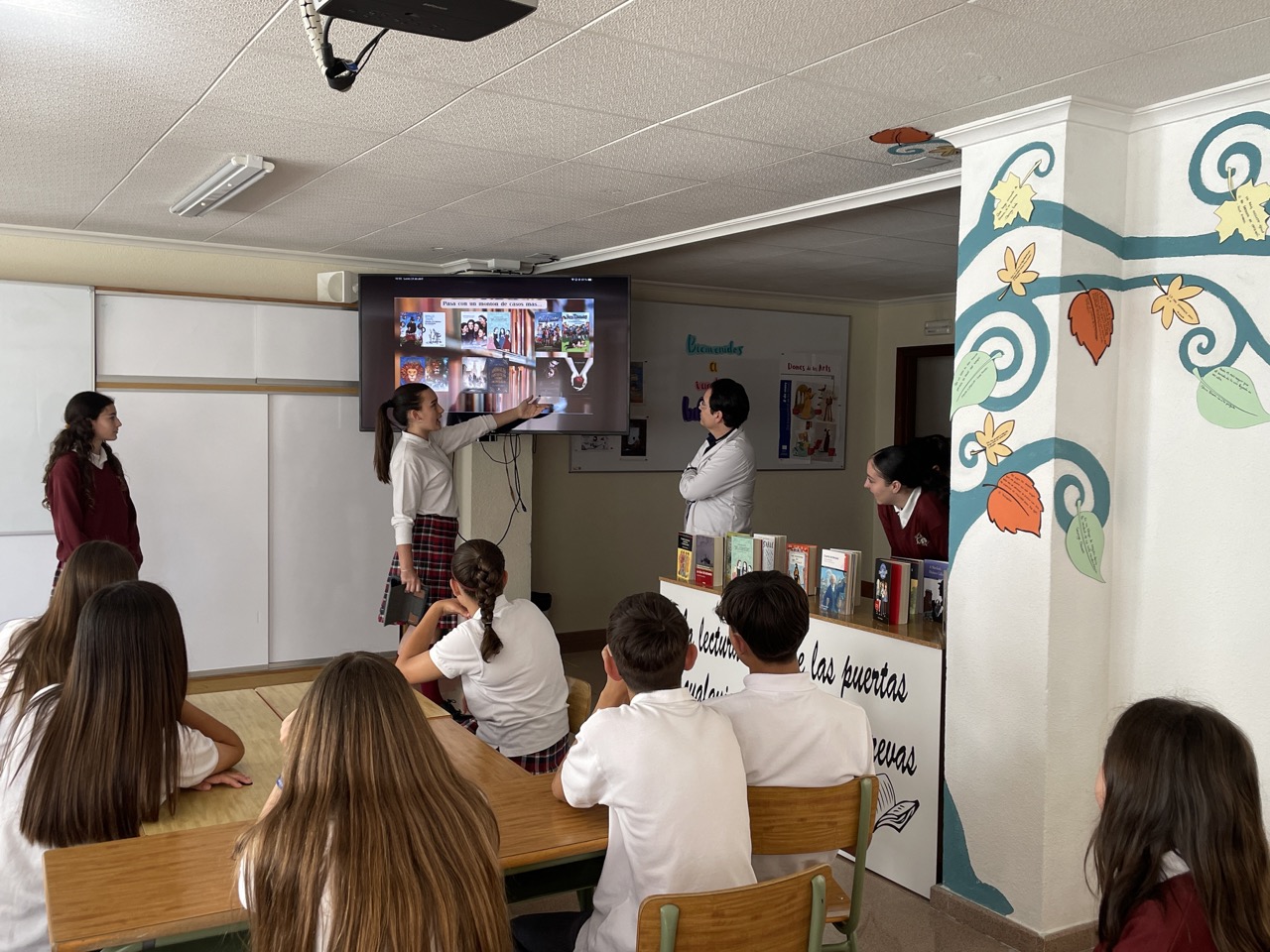 Durante la jornada de ayer celebramos el Día del Libro realizando una de las dinámicas del centro para el fomento de la lectura en la que los alumnos de 1º y 2º de la ESO tomaron el protagonismo de la sesión y pudieron considerar perspectivas respecto a su idea de lectura. Realizaron una presentación para animar a la lectura a alumnos de su edad y, mediante estrategias con herramientas de pensamiento, trataron libros significativos para ellos. El alumnado disfrutó mucho de la experiencia, enmarcada dentro de proyecto de renovación de la biblioteca del centro y ya están preparando nuevos talleres.