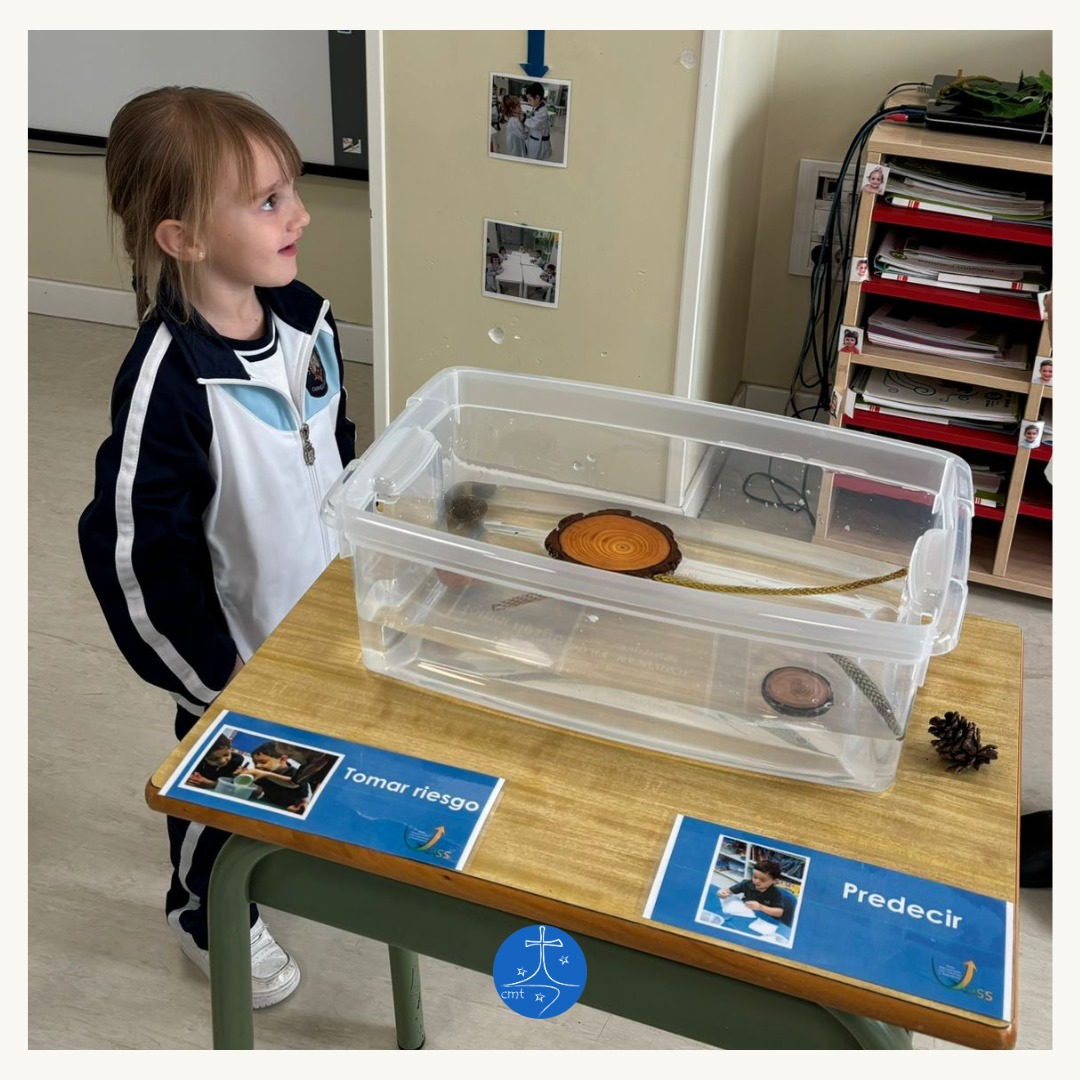 Observamos y experimentamos cómo diferentes elementos de la naturaleza, piedras, hojas o ramitas … flotan o se hunden en el agua, promoviendo la comprensión de conceptos básicos de física y naturaleza mientras se fomenta la curiosidad y la experimentación activa en los niños.