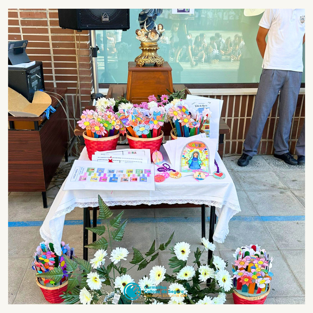 Los alumnos y alumnas del colegio han podido ofrecer, a nuestra madre del cielo, todos los trabajos realizados en estas semanas.