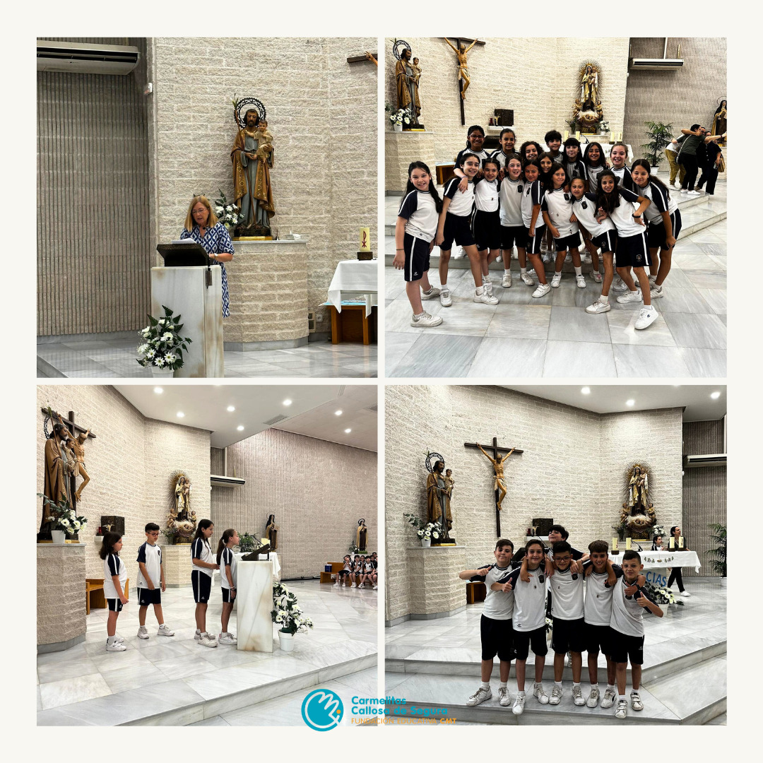Hoy hemos celebrado la imposición de los escapularios bendecidos a los niños y niñas de nuestro colegio que han realizado la Primera Comunión.