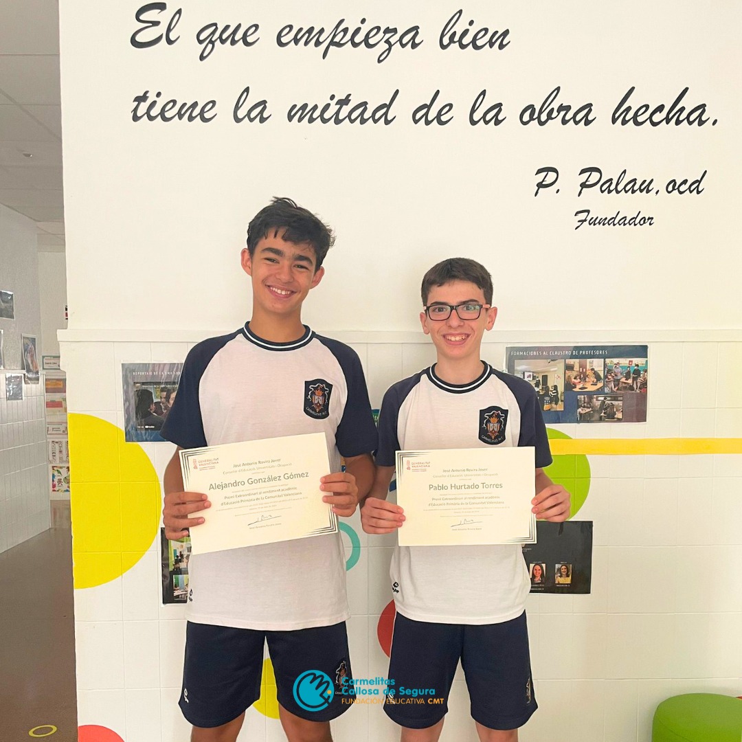 Desde el colegio queremos felicitar a nuestros alumnos Pablo Hurtado Torres y Alejandro González Gómez que la pasada semana recibieron el premio extraordinario por el expediente académico en la etapa de Primaria ?