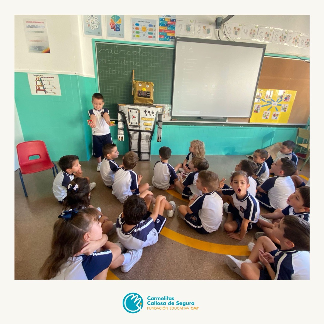 Los alumnos de educación infantil 5 años trabajan el concepto de suma con el “robot de funciones”, a la vez que deben averiguar la regla del robot (n+1).