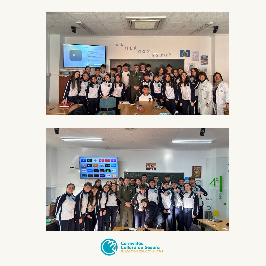 Durante su visita, ha impartido una conferencia en la que ha comparado los valores adquiridos en nuestra escuela con los desarrollados en el Ejército. Ha sido una charla cercana y personal, llena de enseñanzas valiosas para nuestros alumnos de 3º y 4º de la ESO.