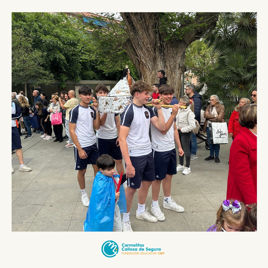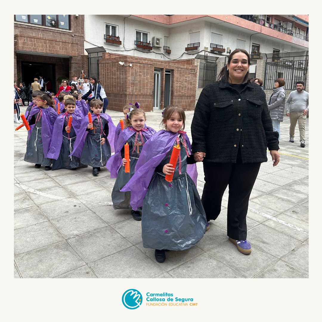 Salir a la Glorieta y sentir que se ha convertido en una tradición en nuestra ciudad. Ver al alumnado y profesorado del centro procesionar martes santo por la mañana es una alegría inconmensurable. Nos sentimos acompañados y arropados por las familias y por todo aquel que se acerca a nuestra procesión.