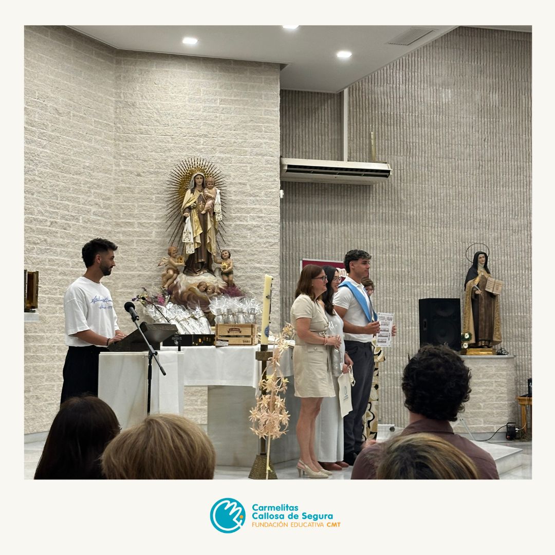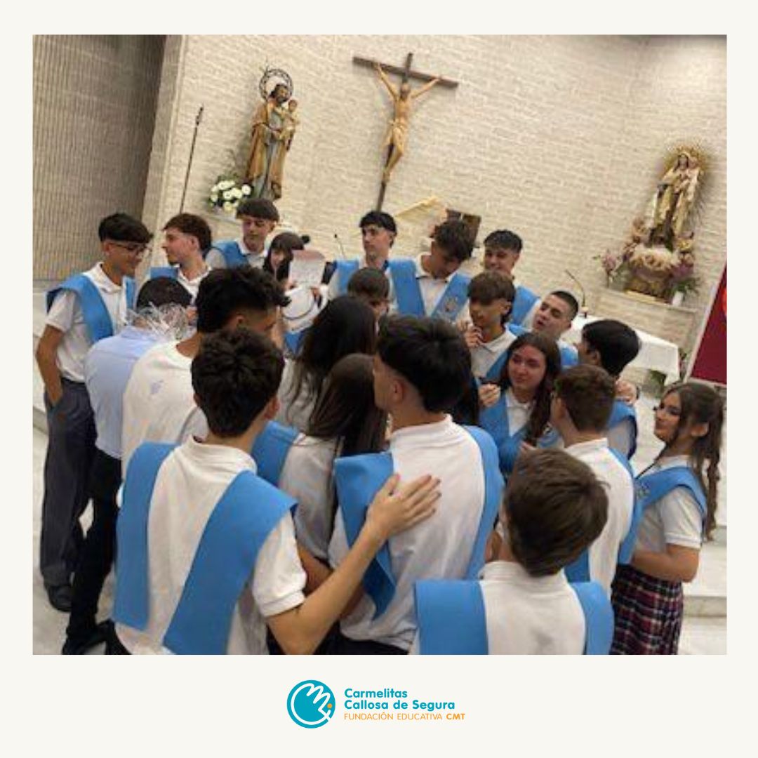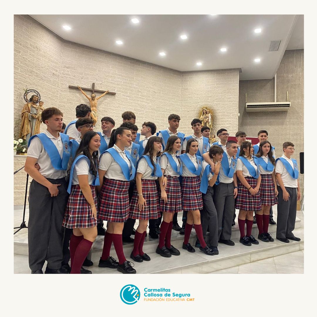 El alumnado de 4ºESO entró a la capilla ataviado y revestido con su beca de graduación y portando una pieza de un puzzle, formando un corazón. Sus caras llenas de alegría indicaban el gran momento que era para ellos y para toda la familia CMT.