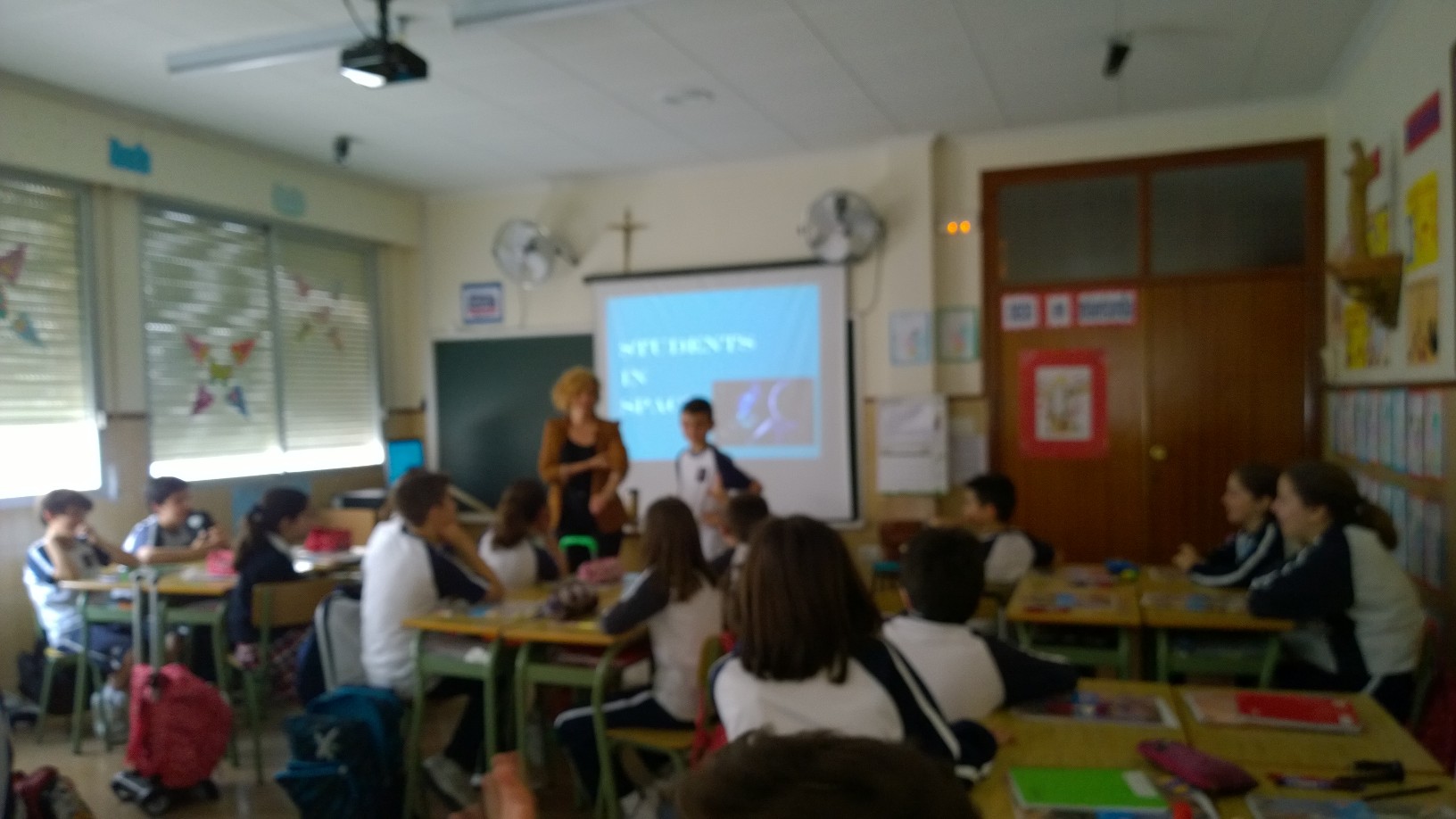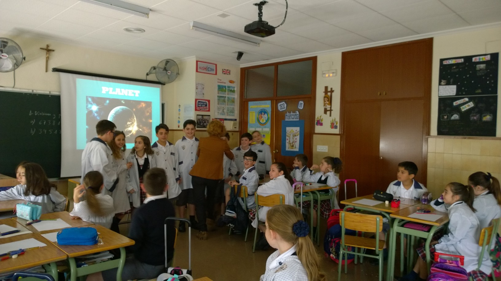 Durante las pasadas semanas, nuestros alumnos de secundaria y de algunos cursos de primaria (4º, 5º y 6º) han recibido en clase unas charlas subvencionadas por la editorial Oxford. Nuestros alumnos de 4º y 5º de Primaria participaron en unas dinámicas sobre el libro Students in Space. Los alumnos de 6º de EP y 1º ESO recibieron una charla sobre la ciudad de Londres y los de 2º, 3º y 4º ESO sobre la ciudad de Nueva York. En todas ellas participaron activamente haciendo preguntas o contestando las que les hacían. Fue una experiencia interesante y divertida.