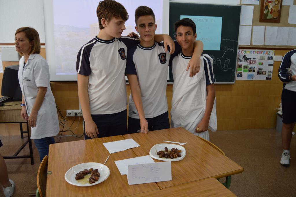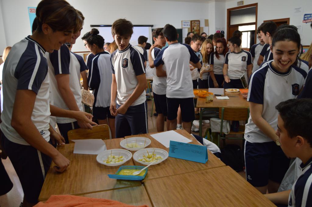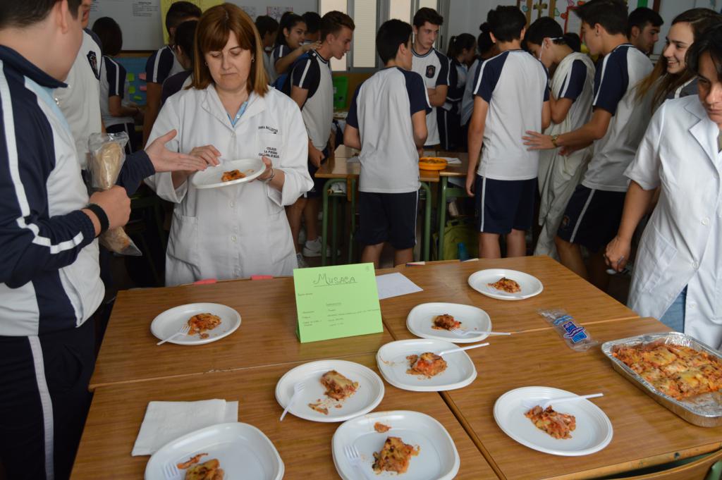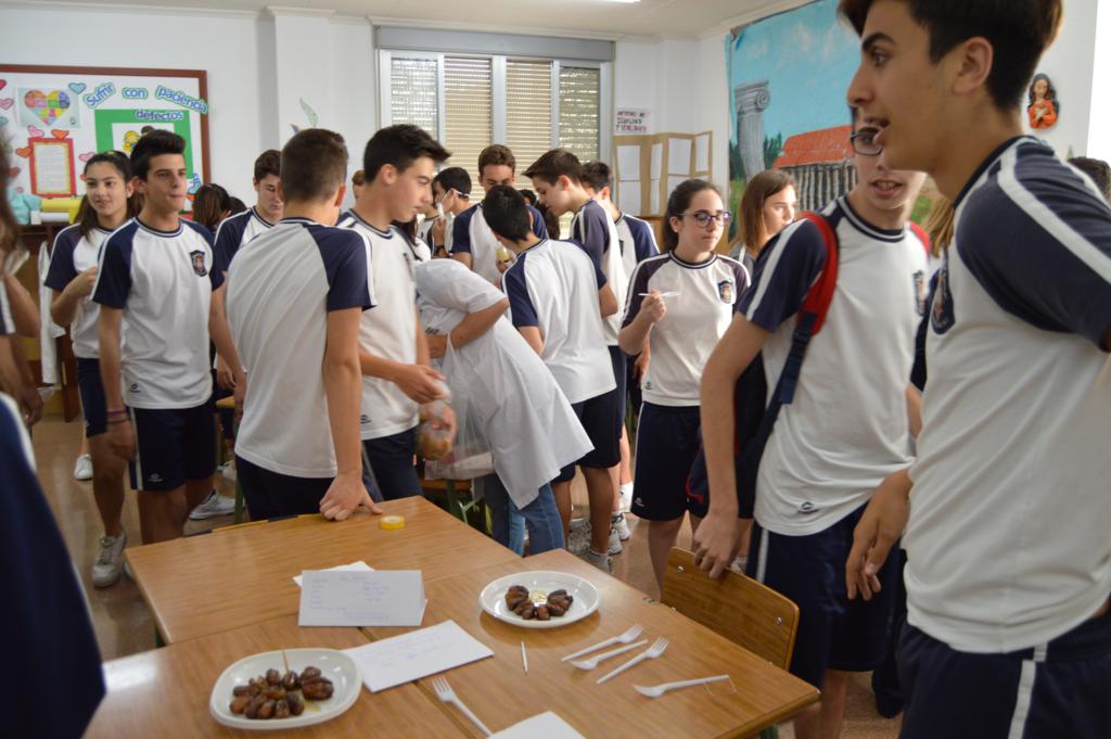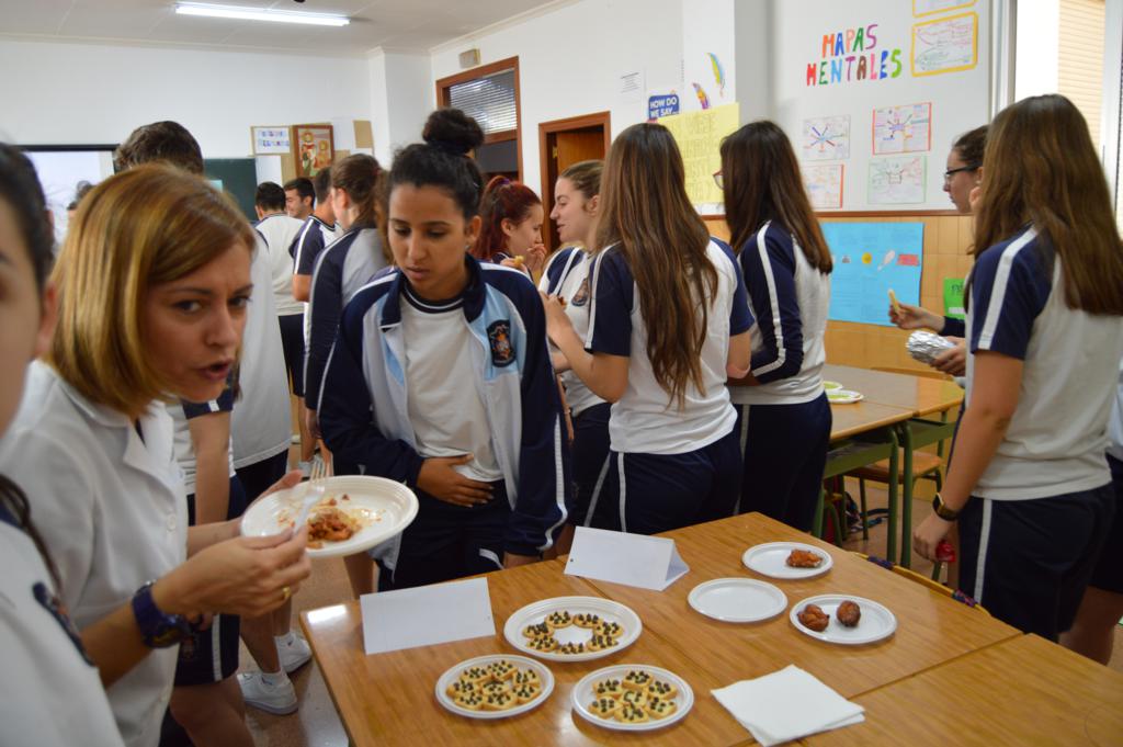 La actividad ha sido organizada por el grupo-departamento de la vida cotidiana que esta evaluación está realizando proyectos sobre la gastronomía, el papel de la mujer y la infancia en la Grecia helenística y la Roma imperial. En esta parte del proyecto se han repartido antiguas recetas de aperitivos y postres de aquellas épocas que cimentaron la dieta mediterránea. Cada grupo o departamento las ha elaborado de la forma más fiel posible, aportando el nombre y los ingredientes y las han dado a probar al resto de los compañeros, a 4º de la ESO y al profesorado.
