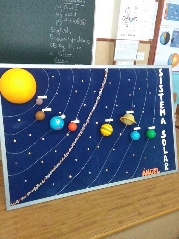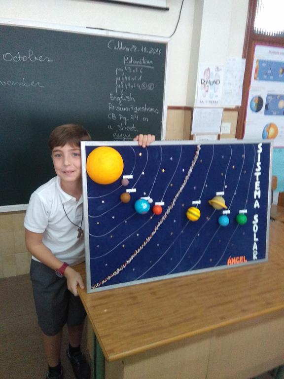 Los alumnos de 5º de Primaria  han realizado unos proyectos sobre el Sistema Solar en los que han plasmado todo lo estudiado en este tema. Posteriormente los han expuesto a sus compañeros así como al resto de los alumnos de los distintos cursos de E. Primaria explicando las características de los planetas y el Sistema Solar, cómo han llevado a cabo  su proyecto y los materiales que han  utilizado. Muchas gracias a todos los alumnos de 5º y a sus familiares por la colaboración que han  prestado.