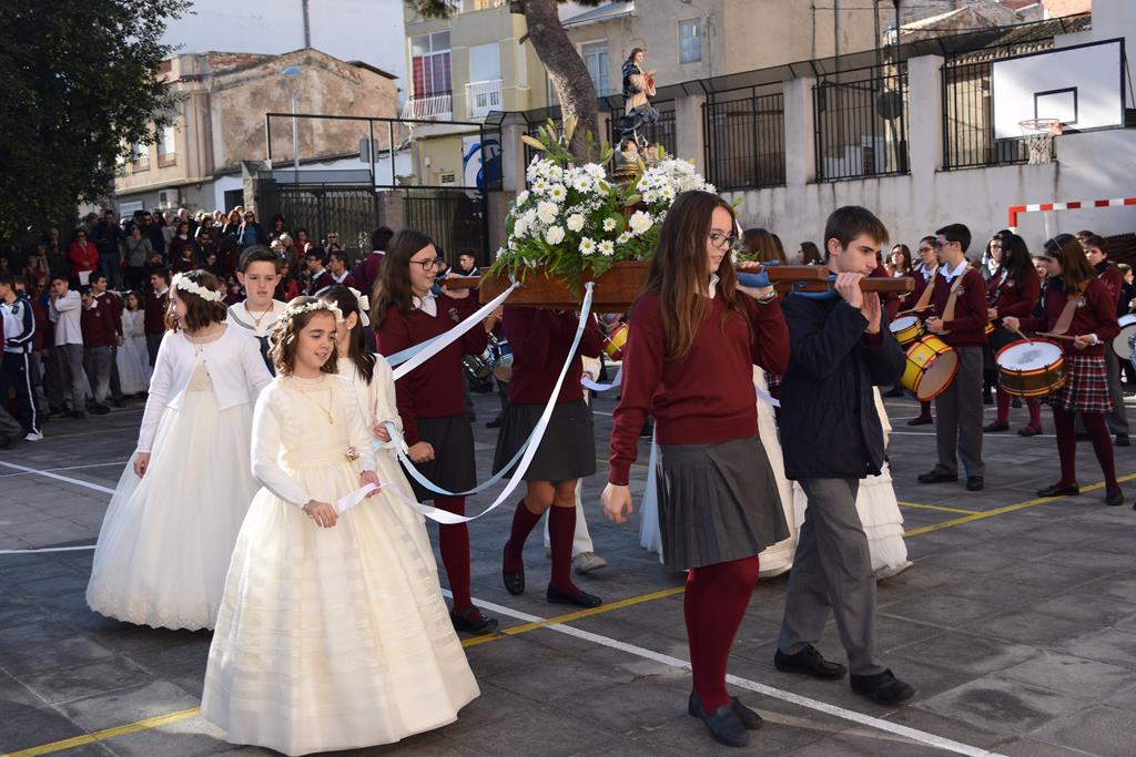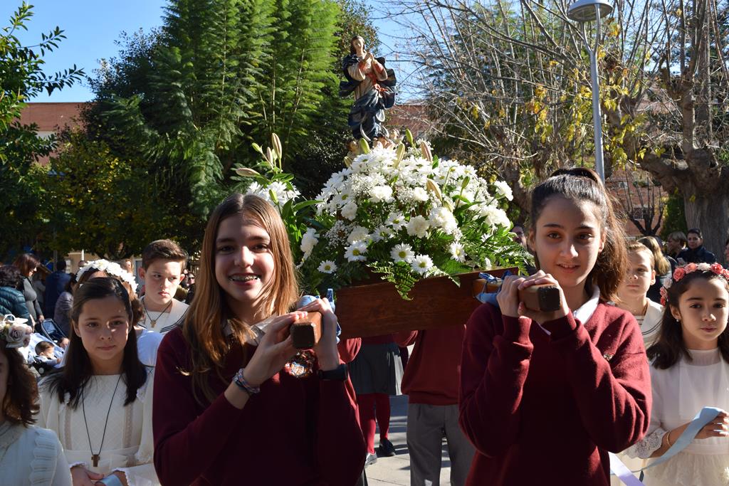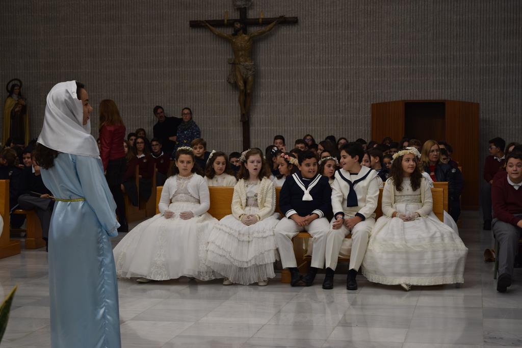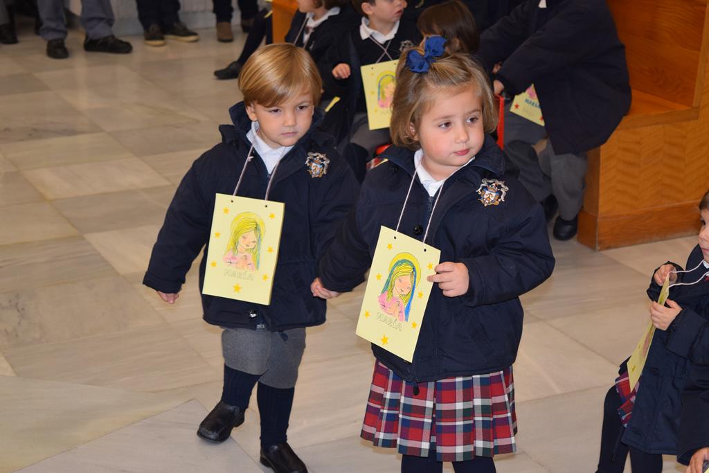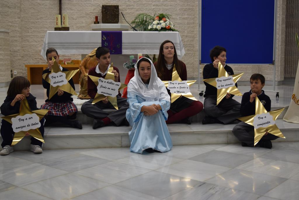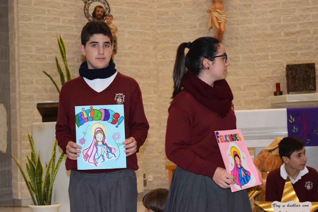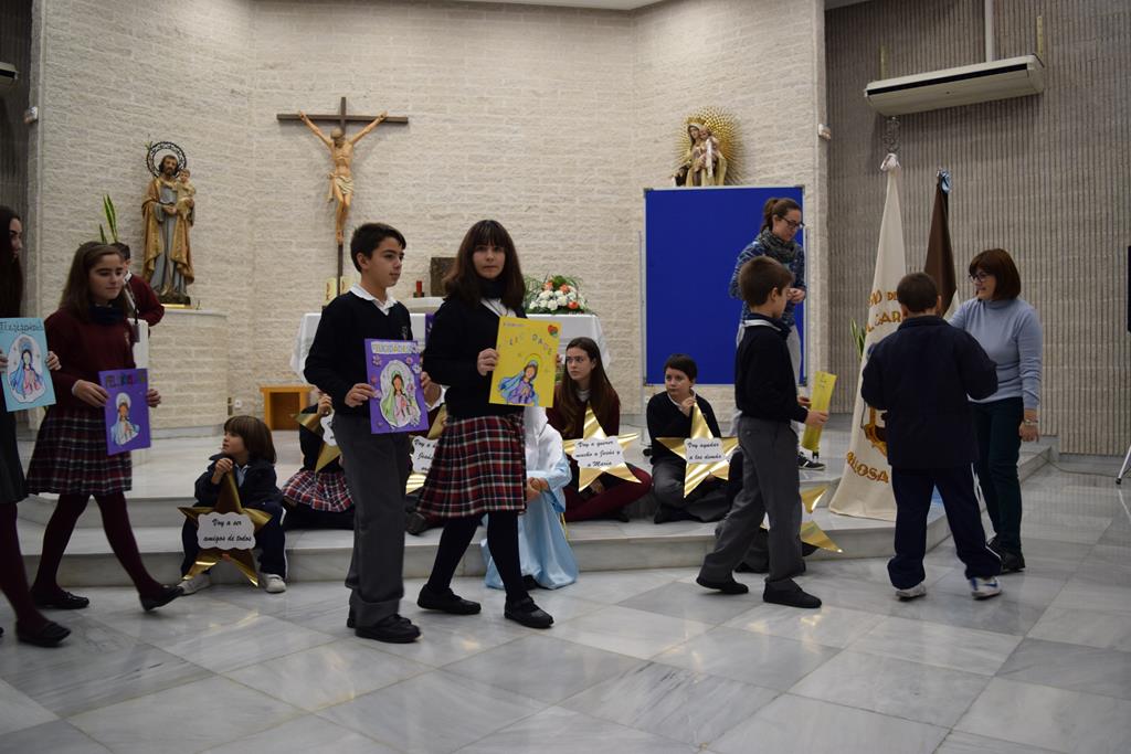 En el día de hoy, víspera de La Purísima, patrona de nuestro colegio, nos hemos preparado de una manera especial para celebrar su fiesta. María, nos reúne porque quiere y desea con amor de Madre que vayamos al encuentro de su hijo.