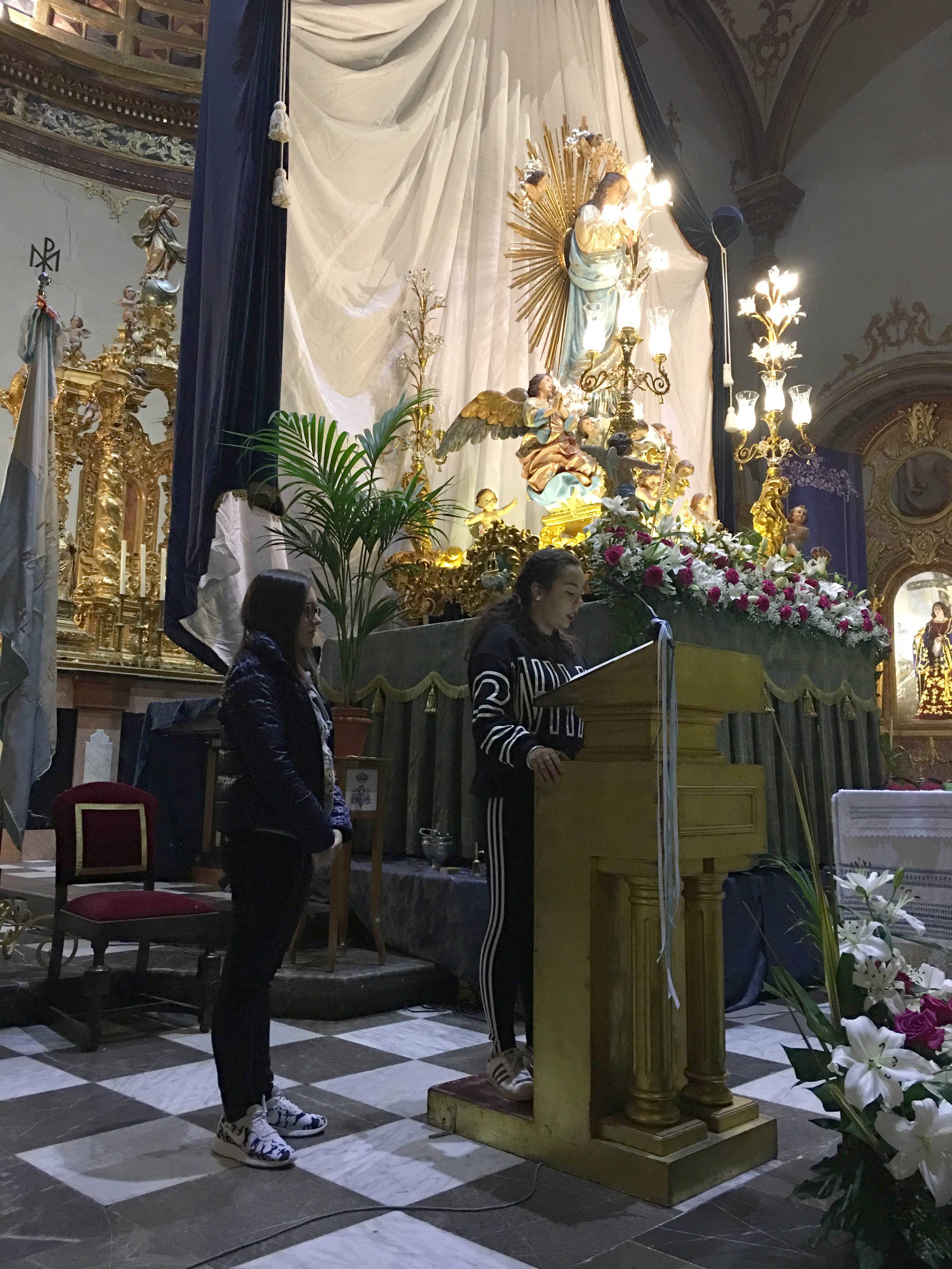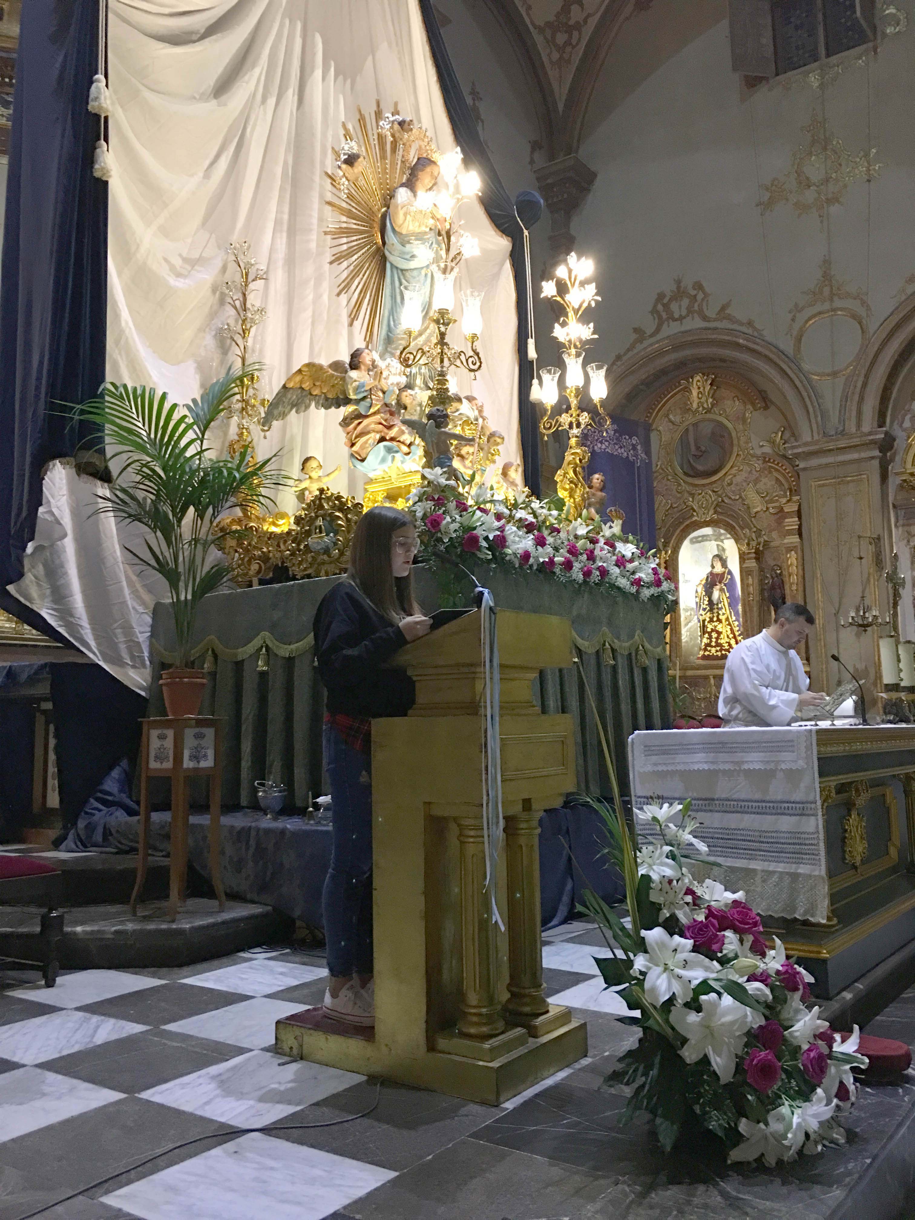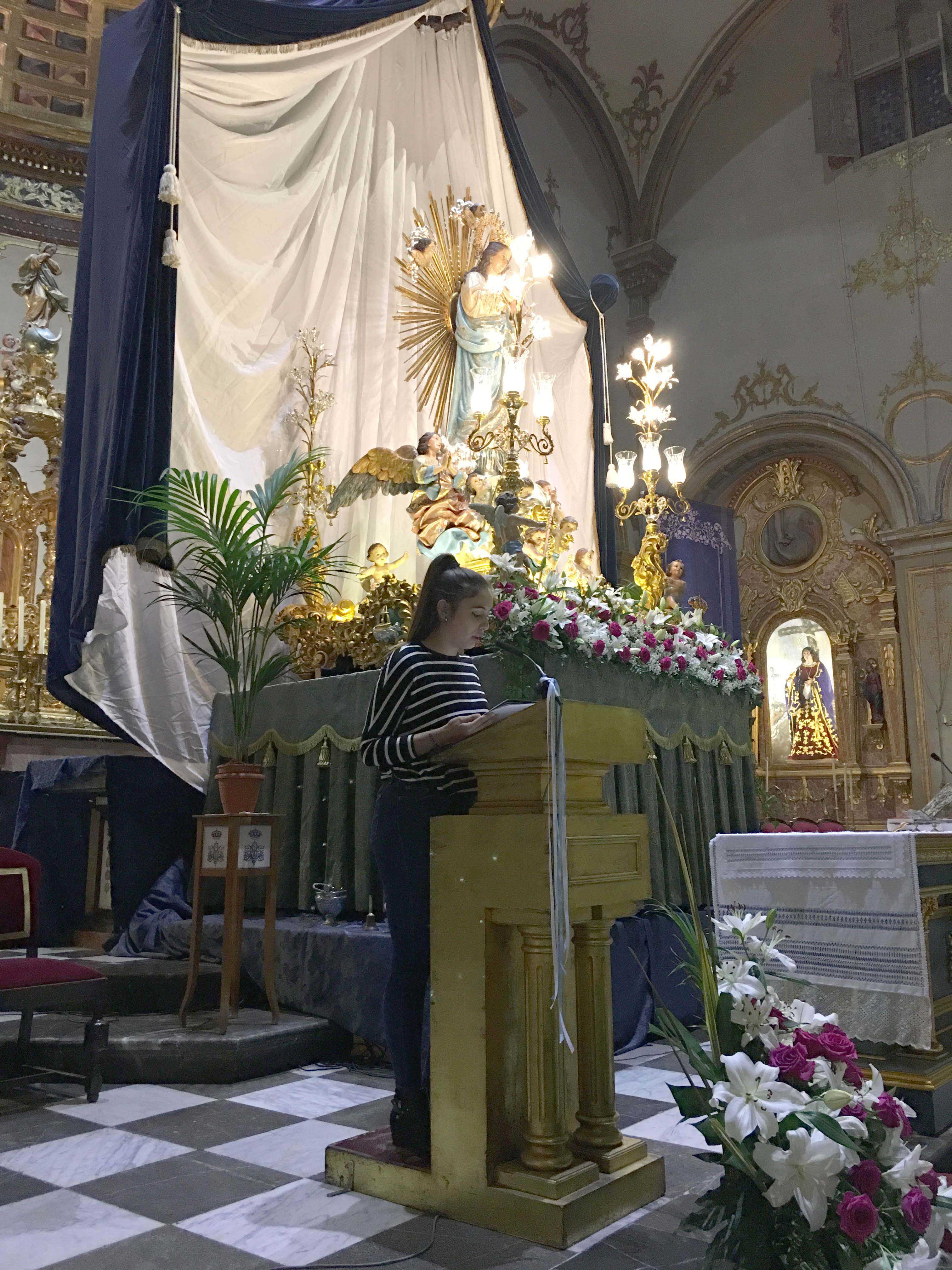 El pasado viernes uno de diciembre, en la Arciprestal de San Martín, alumnas y profesoras de Pastoral compartieron una de las más arraigadas tradiciones religiosas callosinas. Macu, Syra, Carmen y Ángela declamaron de forma magistral la novena y las lecturas eucarísticas del tercer día del novenario a Nuestra Madre y titular del colegio, recibiendo multitud de felicitaciones de los allí congregados.