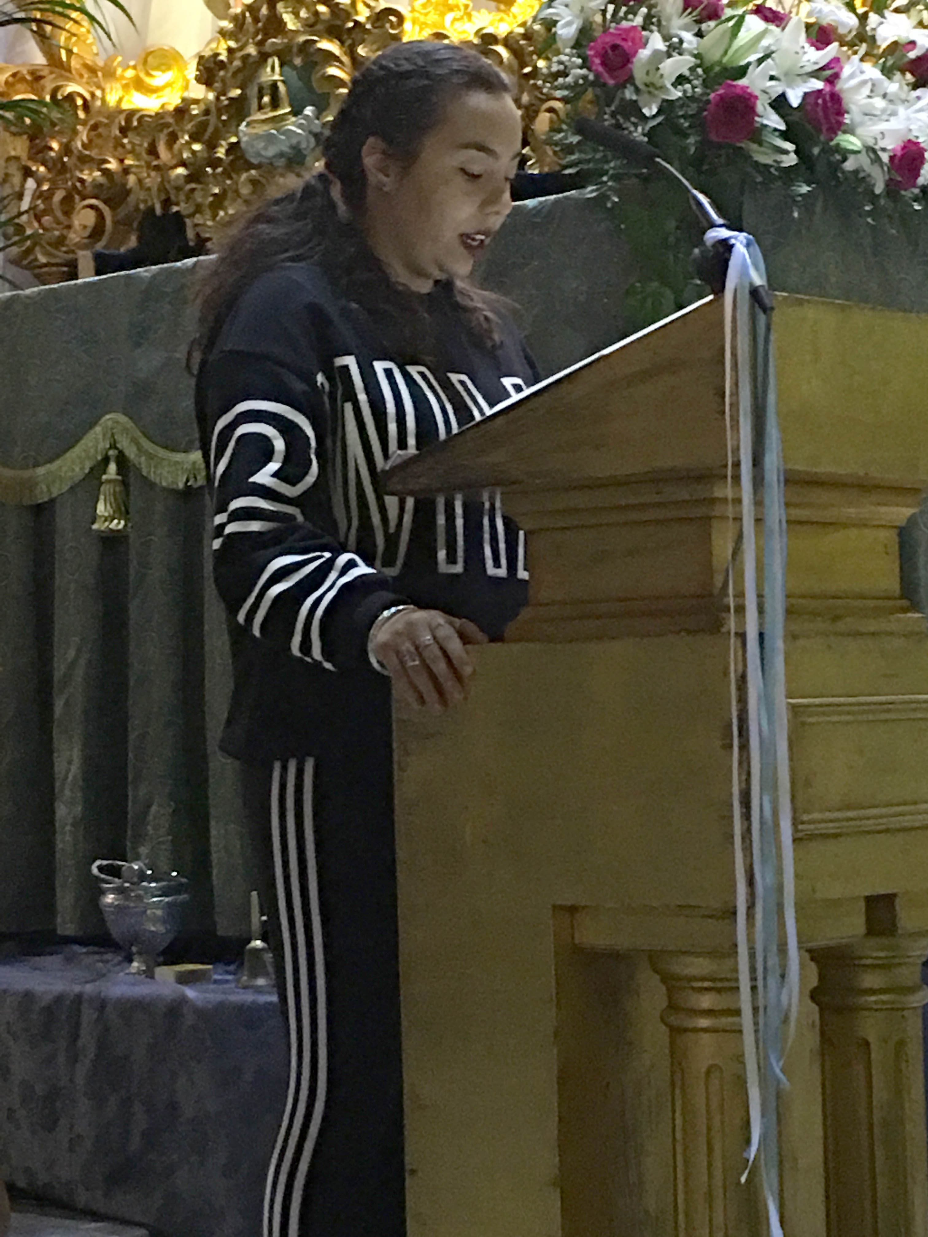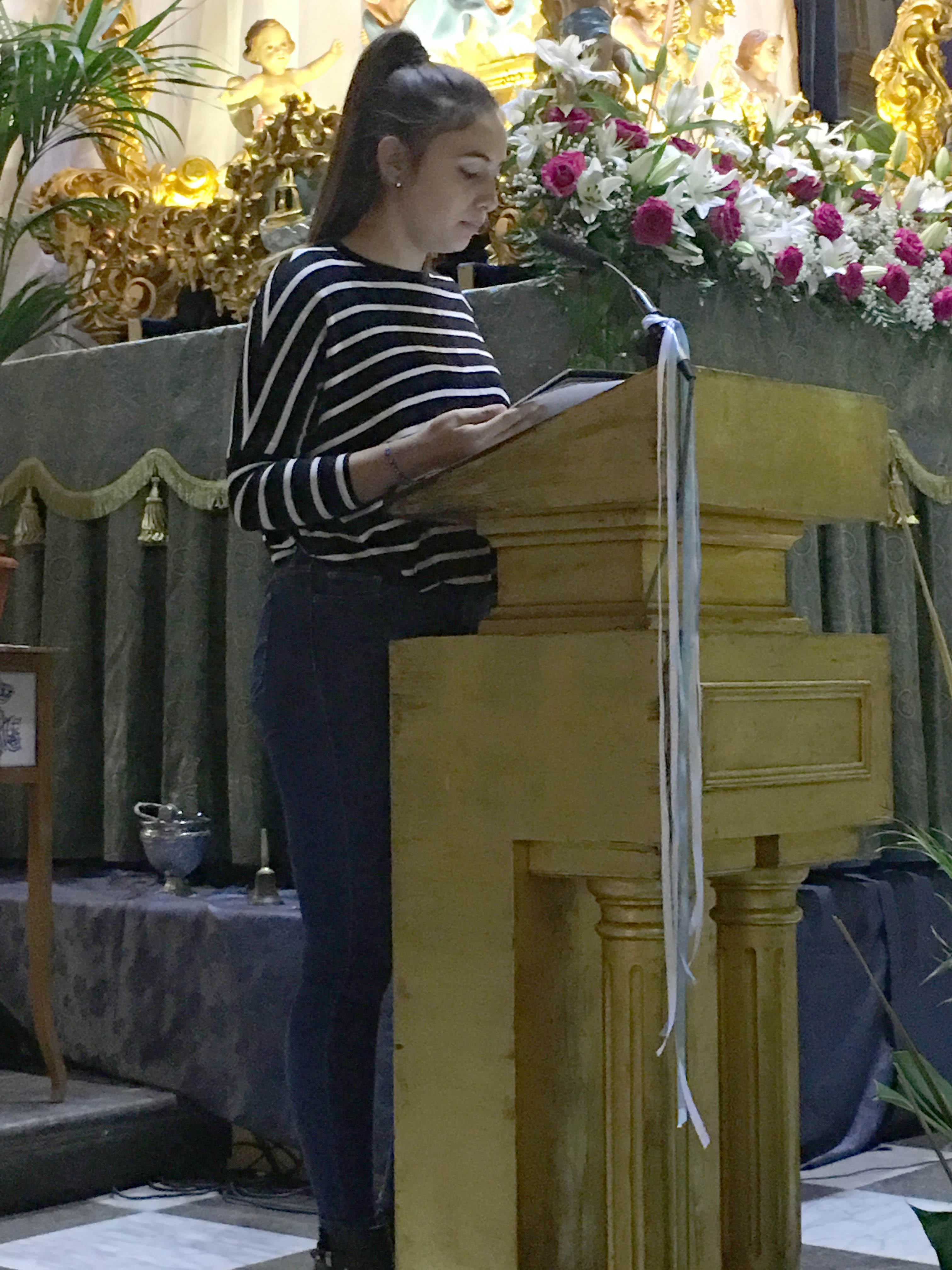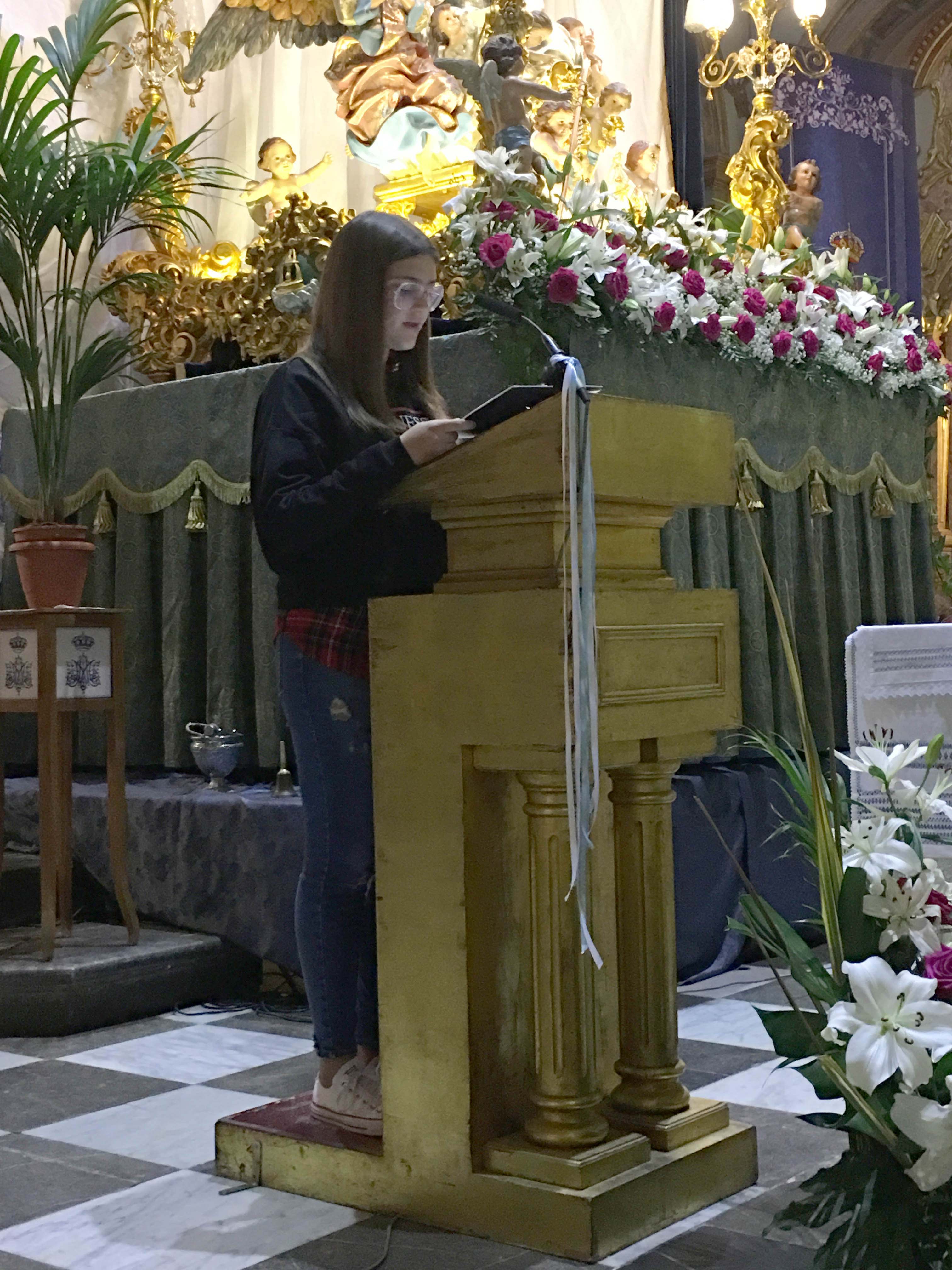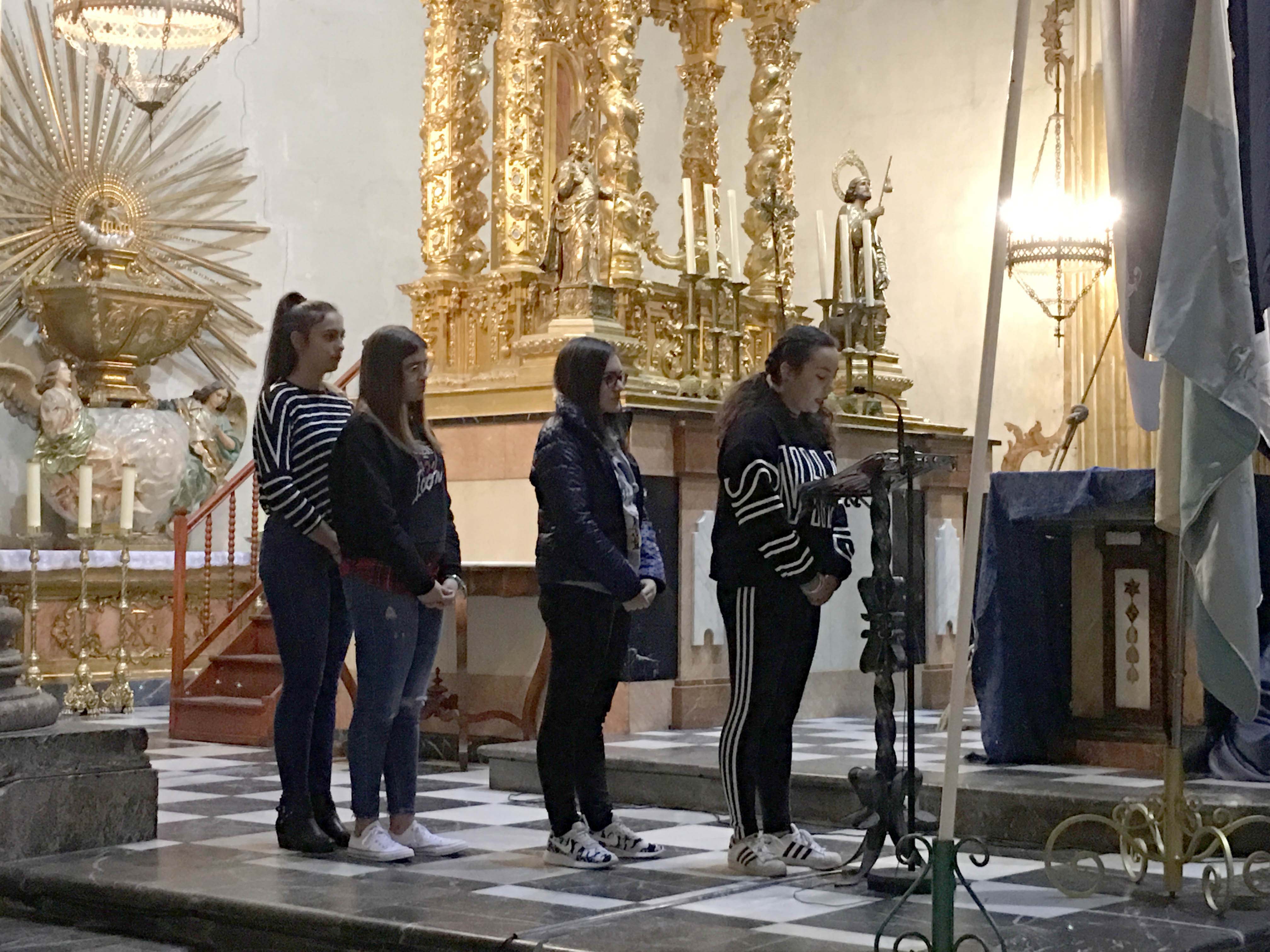 El pasado viernes uno de diciembre, en la Arciprestal de San Martín, alumnas y profesoras de Pastoral compartieron una de las más arraigadas tradiciones religiosas callosinas. Macu, Syra, Carmen y Ángela declamaron de forma magistral la novena y las lecturas eucarísticas del tercer día del novenario a Nuestra Madre y titular del colegio, recibiendo multitud de felicitaciones de los allí congregados.