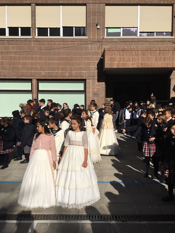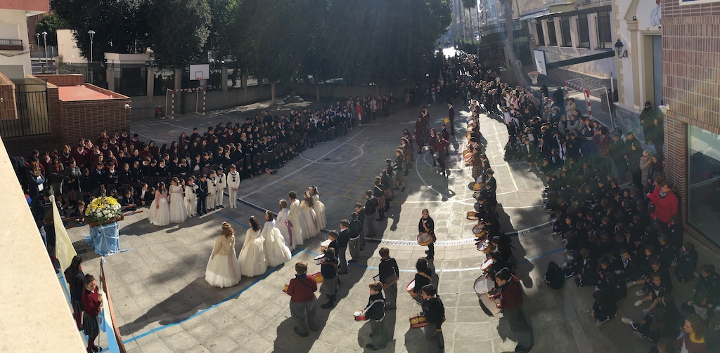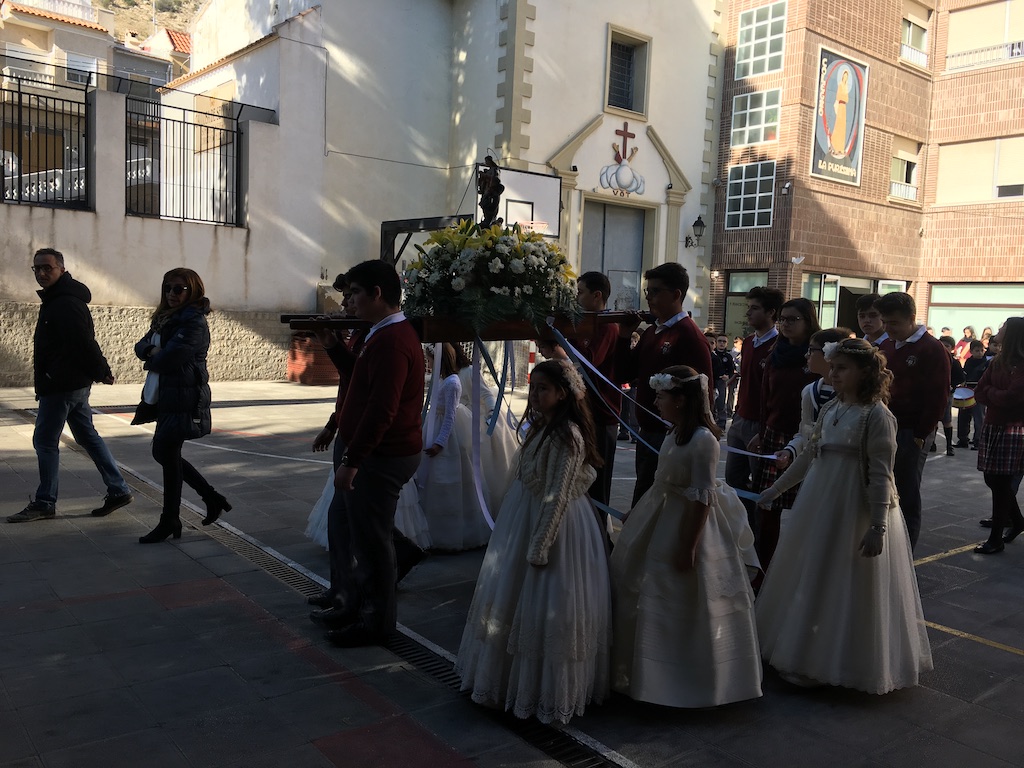 Posteriormente, se realizó una procesión por la Glorieta en la cual todos fuimos partícipes de la belleza de nuestra Madre, acompañada por los niños que realizaron su primera comunión, estudiantes, profesores y padres, al son de los tambores.