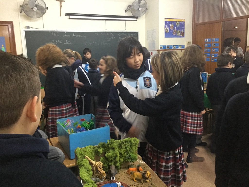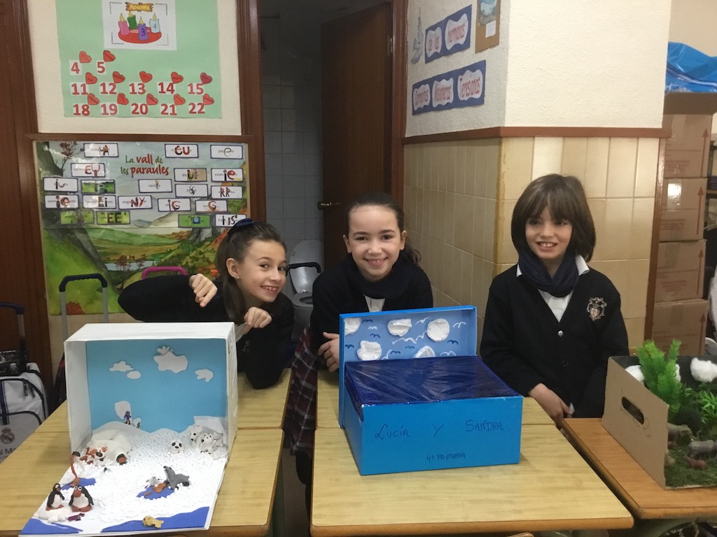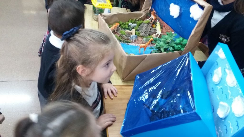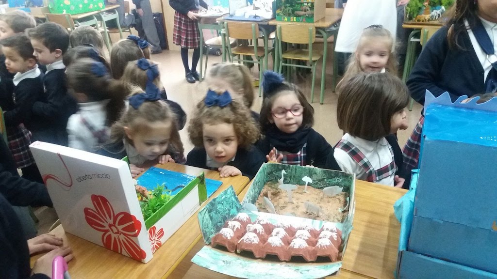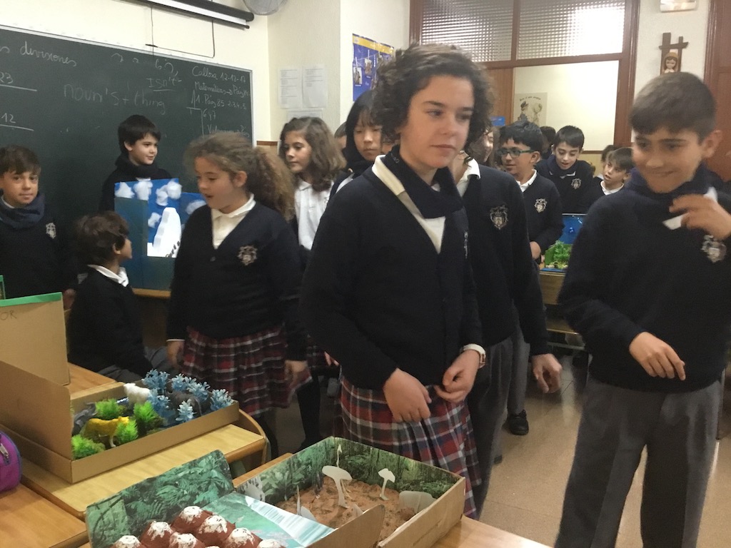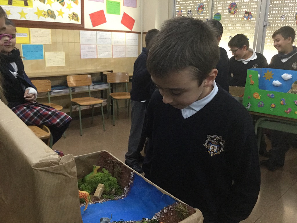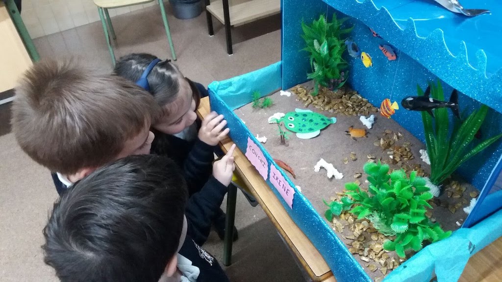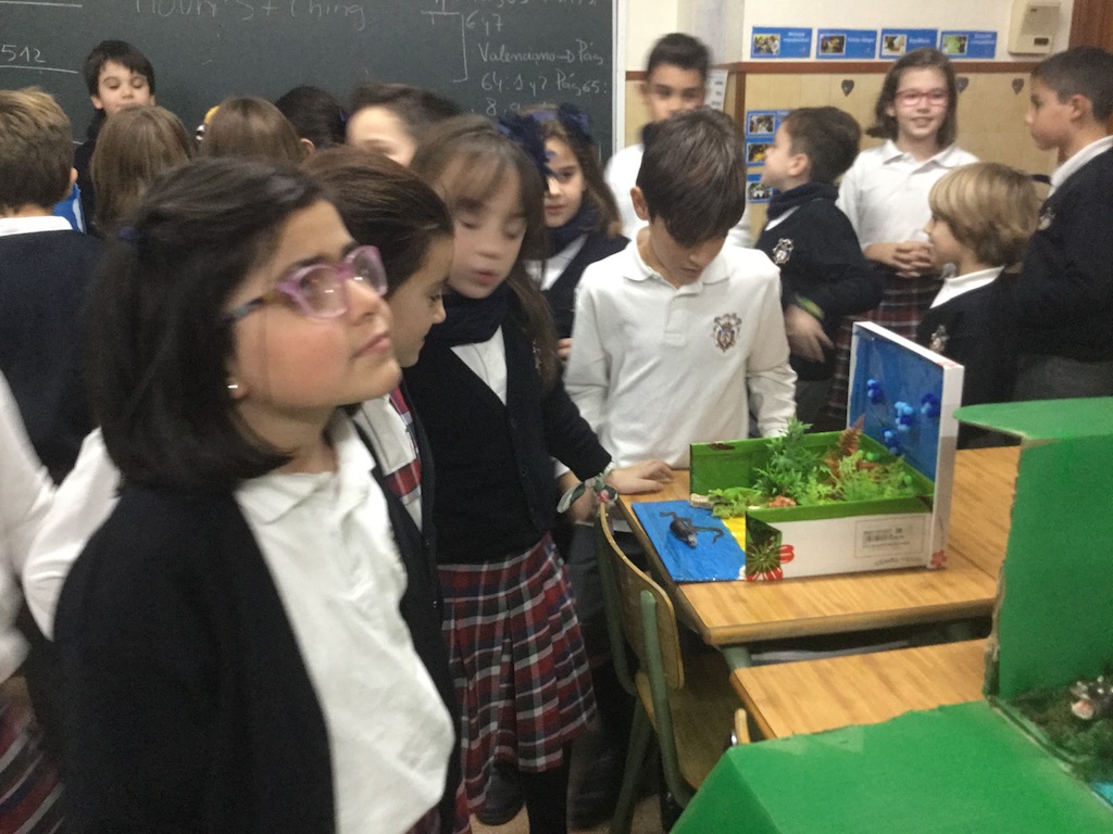 Los alumnos de 4º de Primaria han trabajado los elementos que forman un ecosistema, creando con sus propias manos ecosistemas terrestres y acuáticos, indagando y recogiendo información sobre los seres vivos que forman la comunidad del ecosistema elegido. Los alumnos han plasmado en sus trabajos ideas muy innovadoras, siendo creativos a la hora de realizar los diferentes ecosistemas. Posteriormente los cursos de Ed. Infantil y Primaria pasaron a verlos, dándoles la enhorabuena por lo bonitos y vistosos.