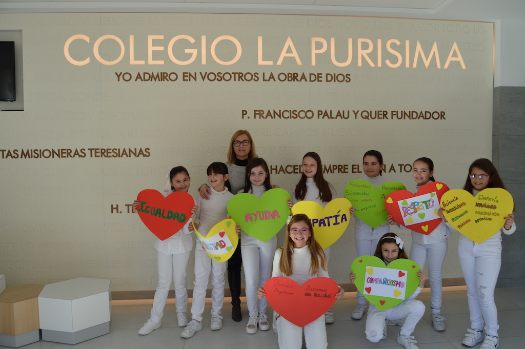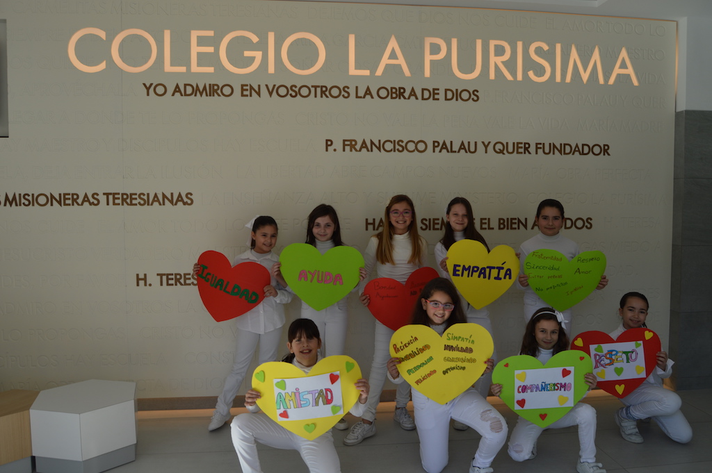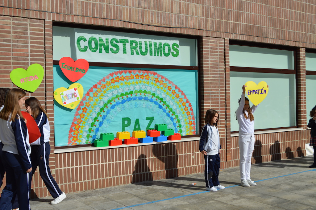 En esta jornada se han derribado muros para poder construir PAZ. Los alumnos de 4º de Educación Primaria han realizado un baile portando unos corazones en los cuales se reflejaba aquello que se necesita para construir Paz: empatía, ayuda, bondad, solidaridad, amistad…Además, se ha leído un manifiesto por la Paz que ha arrancado un sonoro aplauso en el Colegio “La Purísima” y nos ha recordado a Jesús: Debemos perdonar siempre con el corazón y sin mirar a quien.