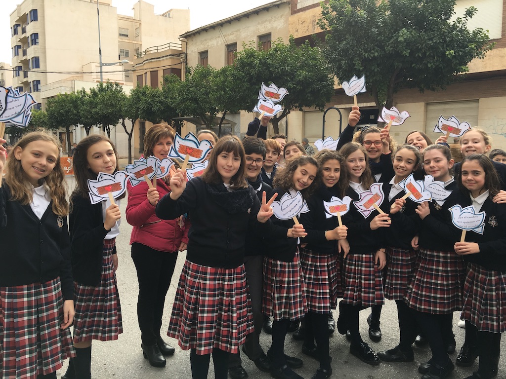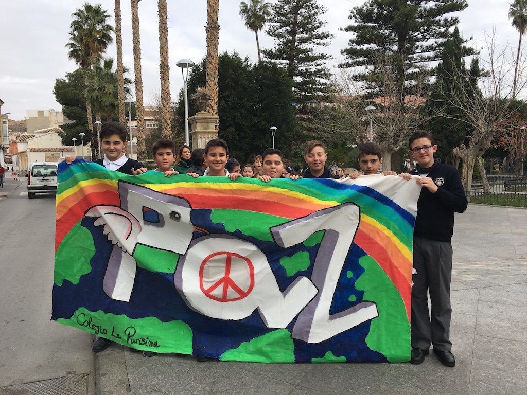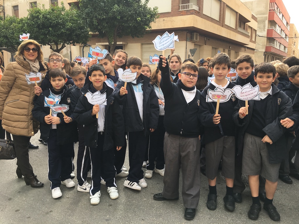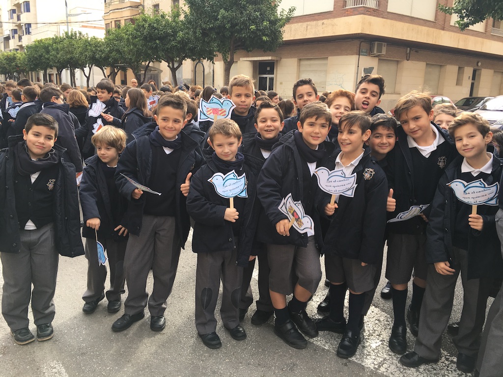 Los alumnos de tercero, cuarto, quinto y sexto de Primaria de nuestro colegio se unieron en el día de ayer a los del resto de centros para participar en la Manifestación por la Paz que se organiza todos los años, terminando con una concentración en el jardín glorieta.