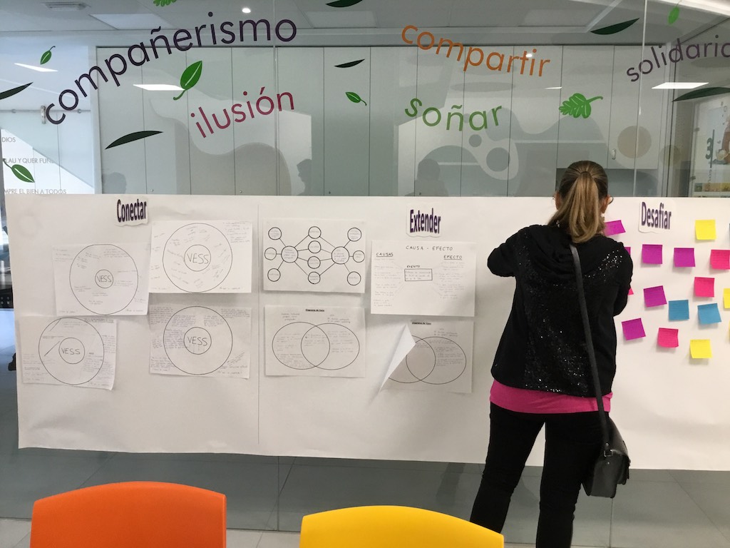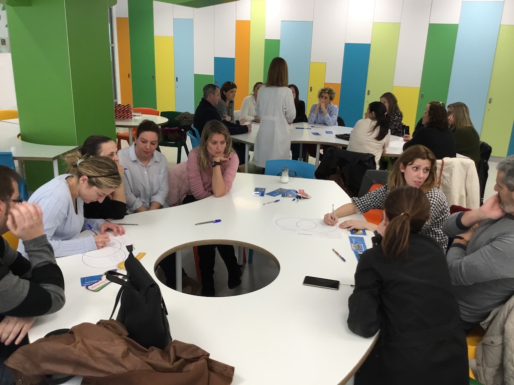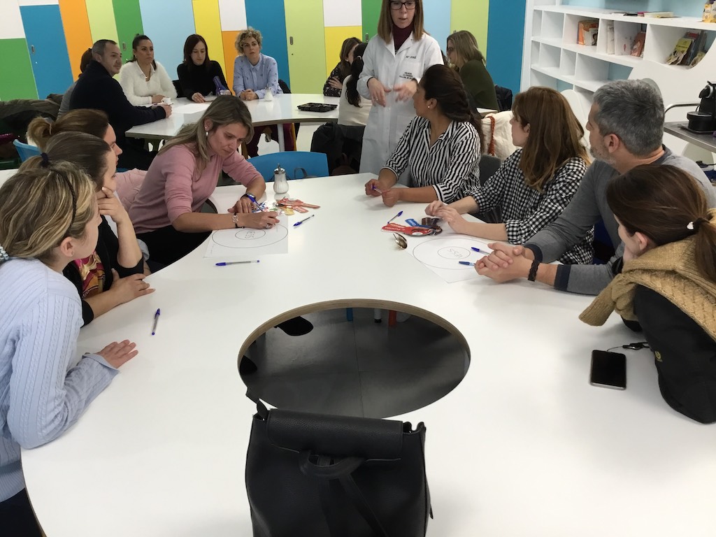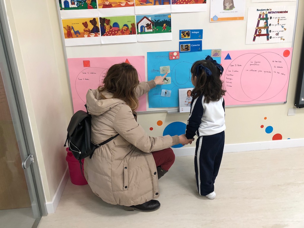 Esta experiencia se ha dividido en tres sesiones. La primera fue el martes 30 de enero y la segunda el martes 6 de febrero, donde un grupo de padres tuvo la oportunidad de entrar al aula de sus hijos y experimentar una sesión trabajando diversas estrategias de aprendizaje y rutinas de pensamiento. Los papás y mamás observaron y participaron con ellos en las diversas actividades. Para concluir cada sesión mantuvimos con ellos una conversación donde pudieron expresar sus impresiones y emociones.