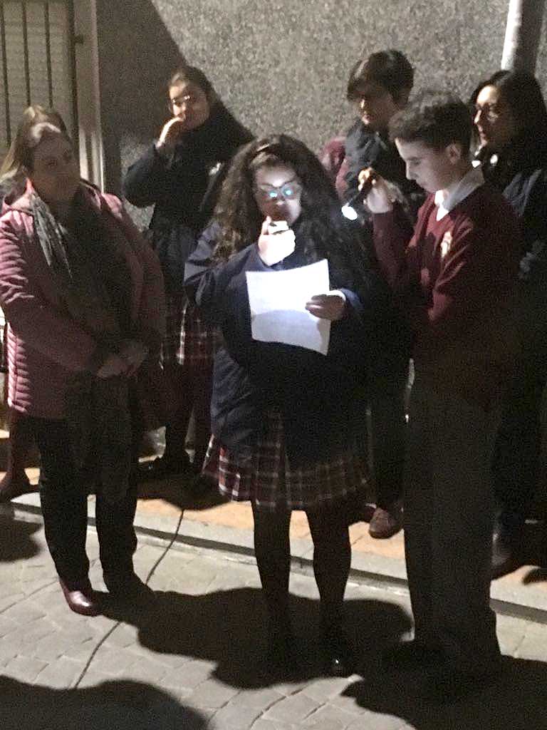 El pasado jueves 15 de marzo, al igual que los últimos años, un numeroso grupo de alumnos y alumnas, junto a las hermanas carmelitas misioneras teresianas, profesoras, padres, madres y familiares que formamos el colegio “La Purísima”, compartimos la Pasión, Muerte y Resurrección de Jesús a través de textos bíblicos, textos del P. Francisco Palau y a través de los acontecimientos de nuestros tiempos y realidades, con el grupo “Los Pasos”.