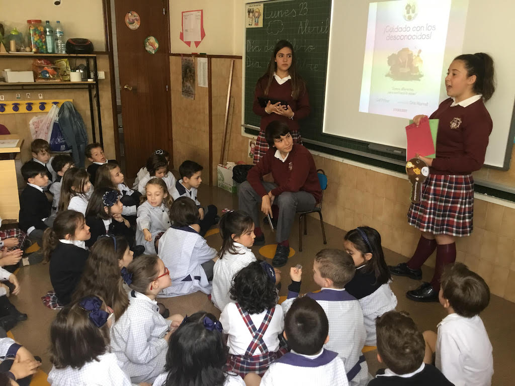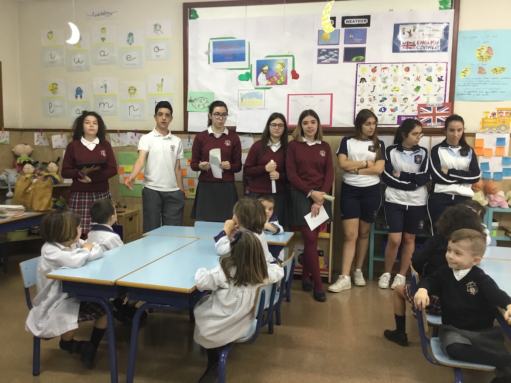 En el día de ayer, con motivo del Día del Libro, los alumnos de Educación Secundaria contaron cuentos a los alumnos de  4 y 5 años de Educación Infantil. Éstos han disfrutado mucho.