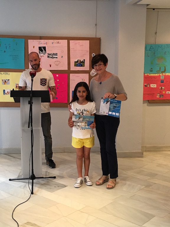 La alumna de 5º de EP Claudia Antón recibió ayer el primer premio del III Concurso de Murales por la Igualdad centrado este año en "La Mujer en el Deporte", convocado por la Concejalía de Igualdad.