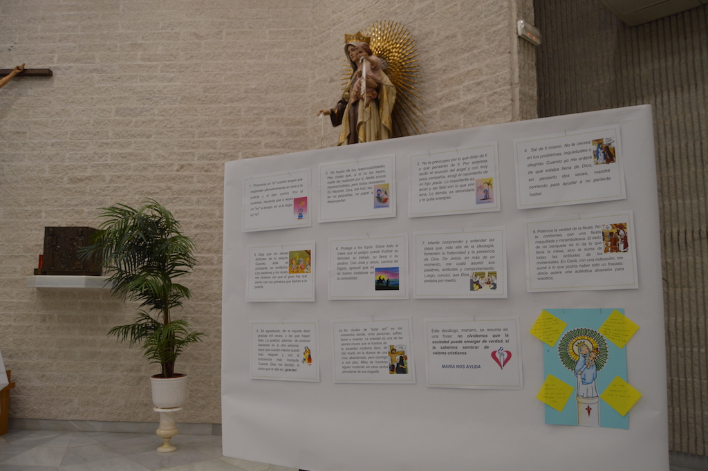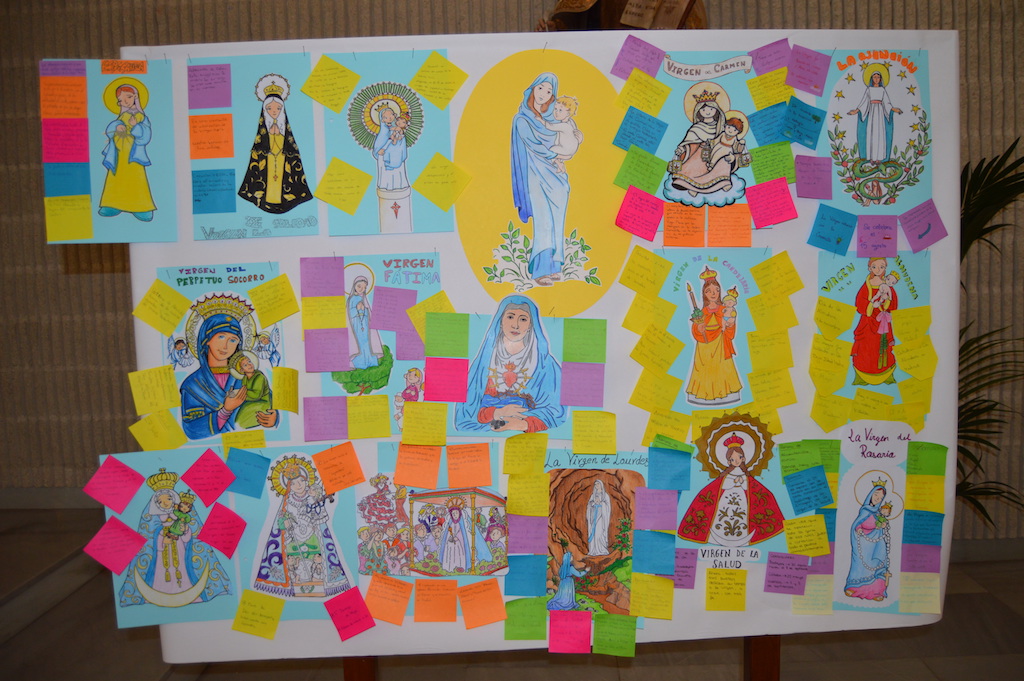 Por otro lado en Educación Secundaria y 4º, 5º y 6º de EP realizamos diferentes trabajos manuales relacionados con las advocaciones que recibe nuestra madre y se confeccionó un mural con los diferentes SÍ a María y con los cuales nos vemos identificados.