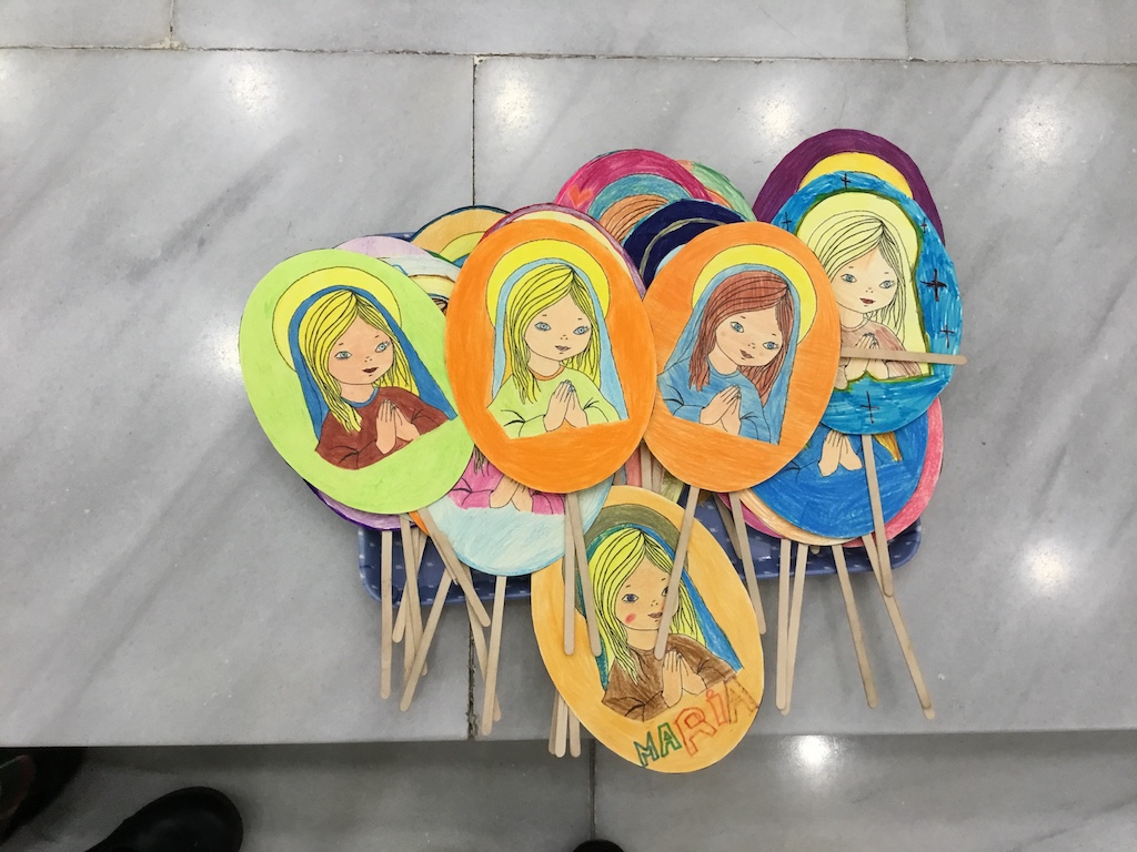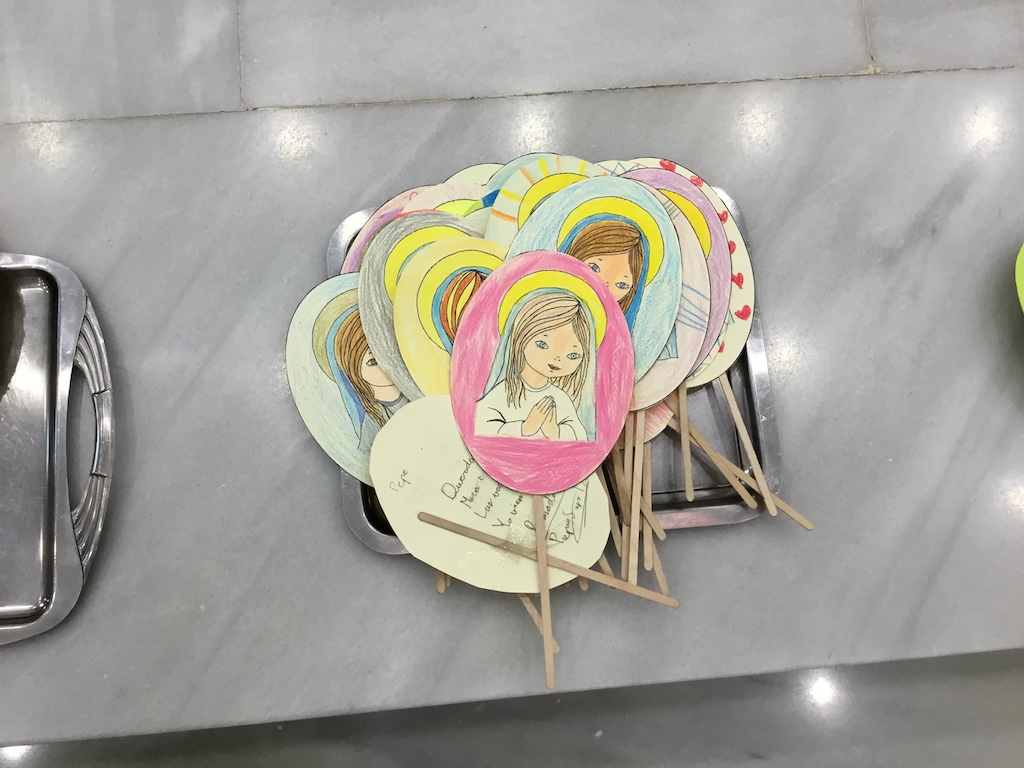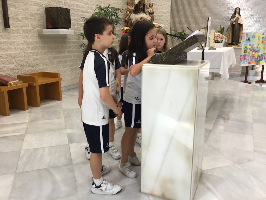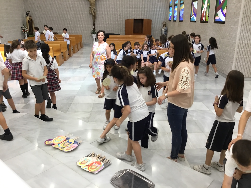 En Educación Infantil y 1º, 2º y 3º de Educación Primaria, realizaron una serie de peticiones y dieron gracias a nuestra Madre por ayudarnos, por acompañarnos en nuestro día a día. Además, ofrecieron unos “pay pay” que elaboraron con SU imagen y un piropo o un mensaje que le dedicaron a la Virgen desde lo más profundo del corazón.