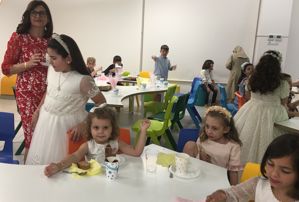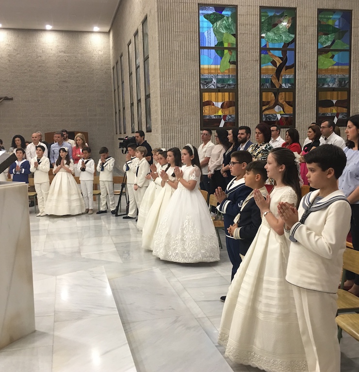JUNTOS EN EL COLEGIO CELEBRANDO LA PRIMERA COMUNIÓN