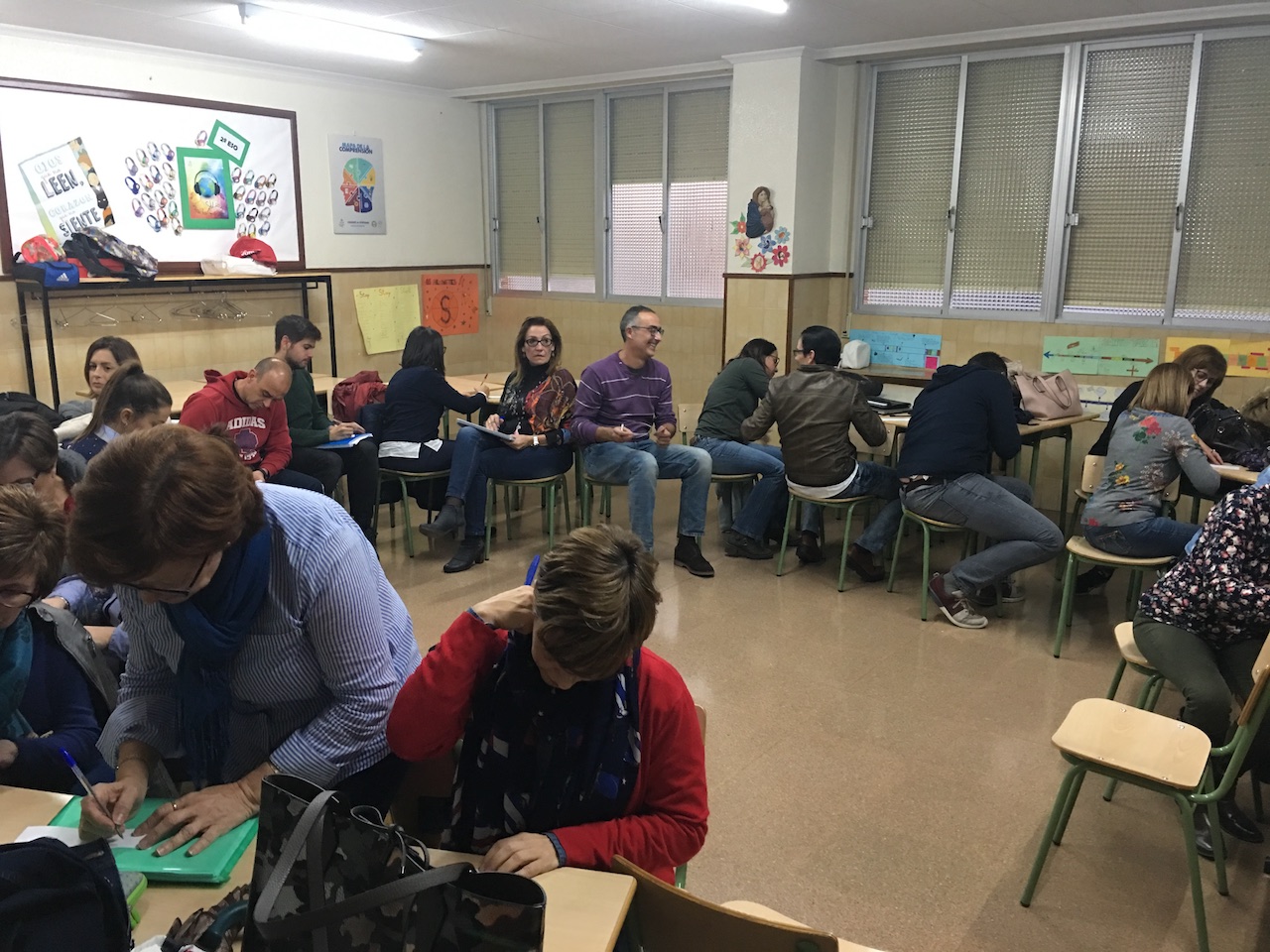 En la tarde de ayer, los profesores del colegio “La Purísima” (Callosa de Segura) realizaron una sesión de formación en Interioridad. Analizaron sus emociones, y las hicieron visibles a través de una actividad dinámica.