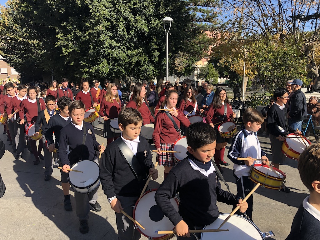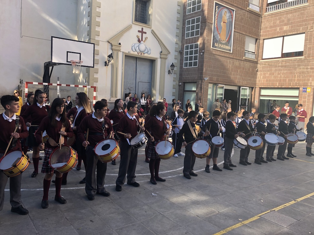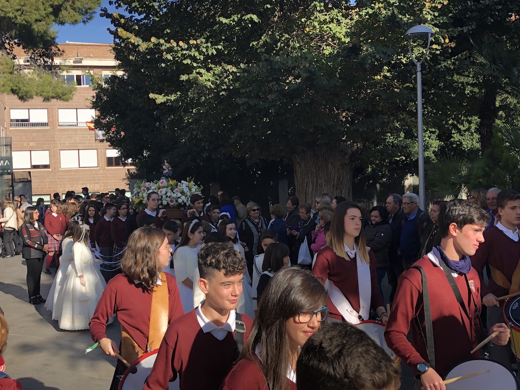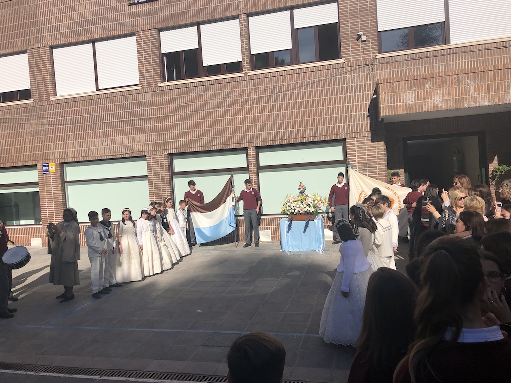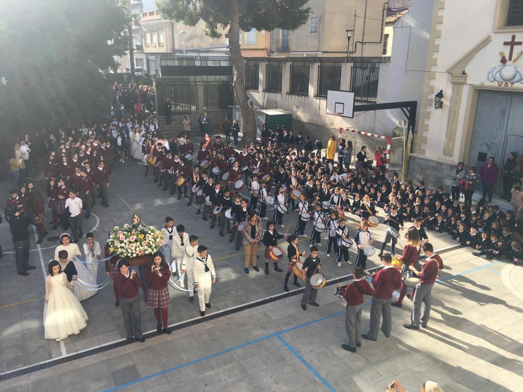 Una vez finalizado el acto en la capilla del colegio, se llevó a cabo una solemne procesión donde la Virgen, al son de los tambores, estuvo acompañada por los niños de primera comunión de nuestro colegio y por toda la comunidad educativa.