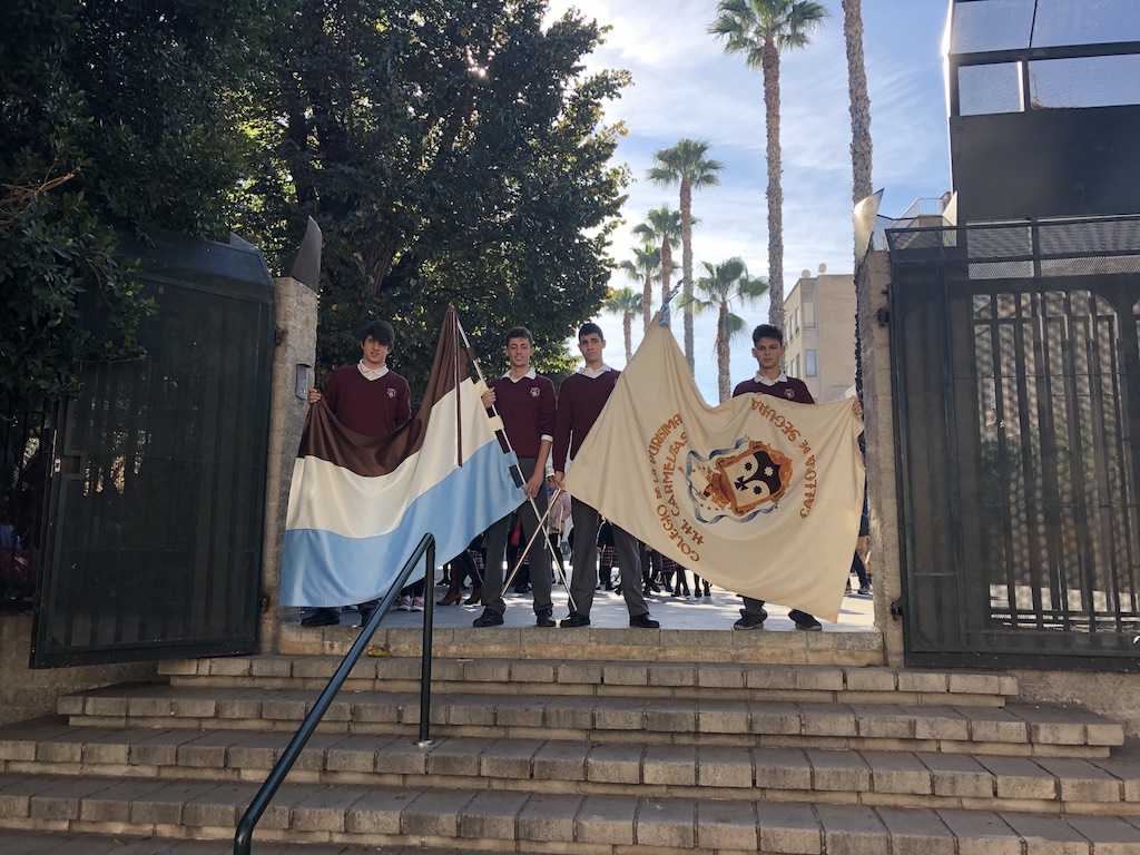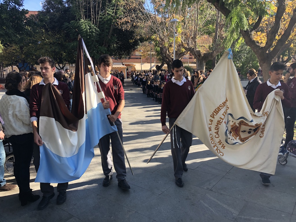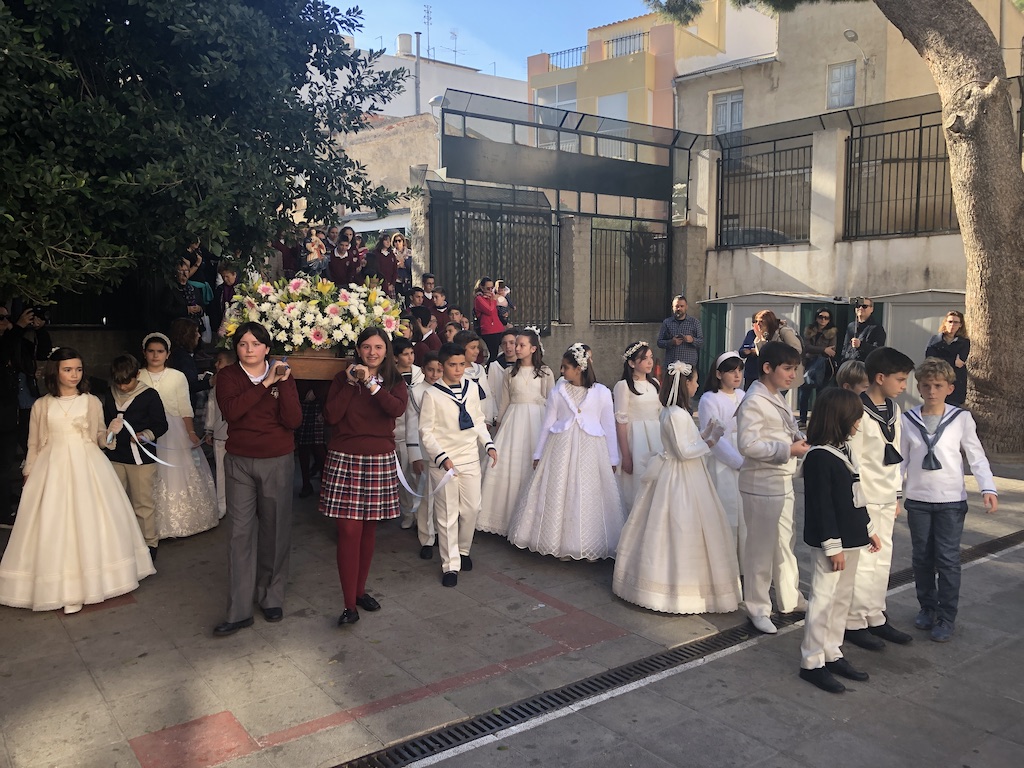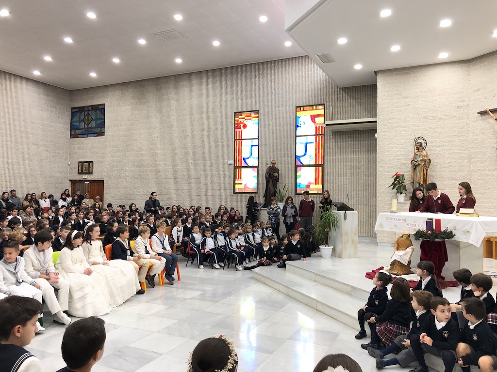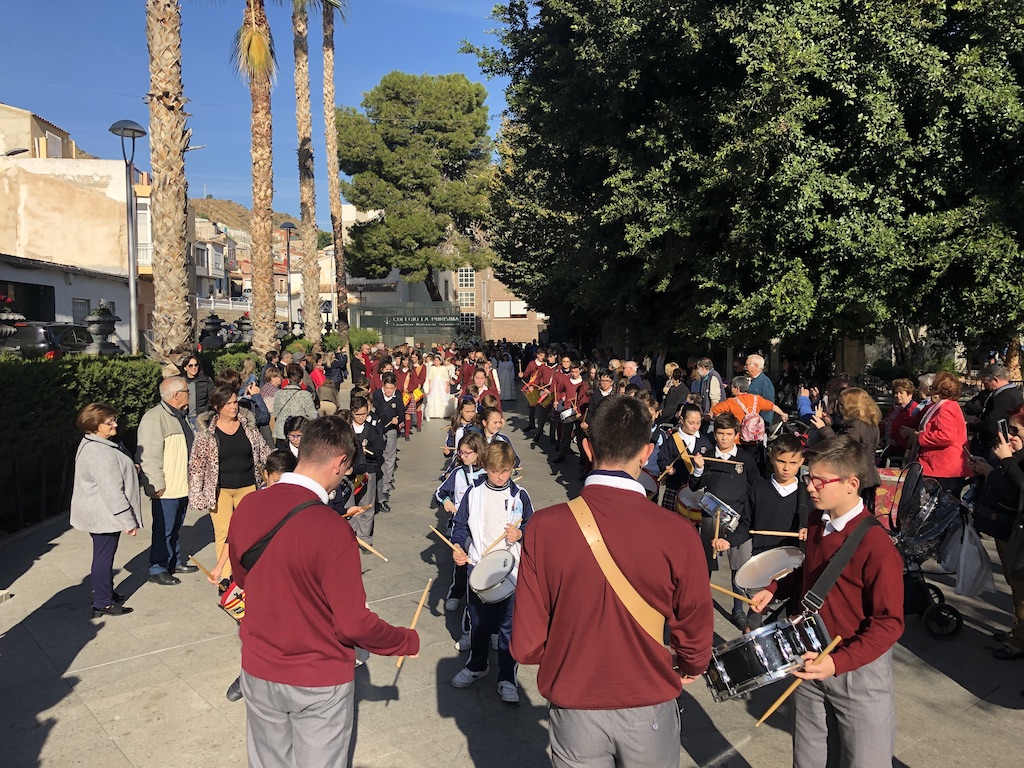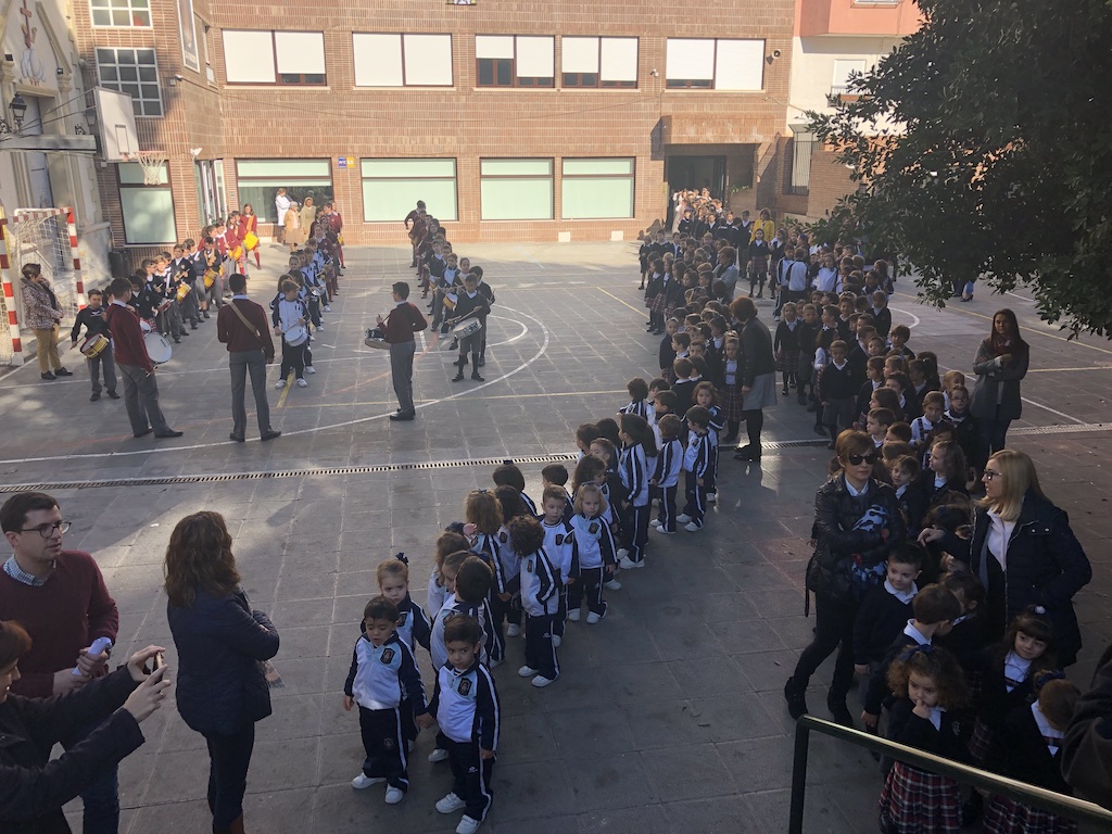 Una vez finalizado el acto en la capilla del colegio, se llevó a cabo una solemne procesión donde la Virgen, al son de los tambores, estuvo acompañada por los niños de primera comunión de nuestro colegio y por toda la comunidad educativa.
