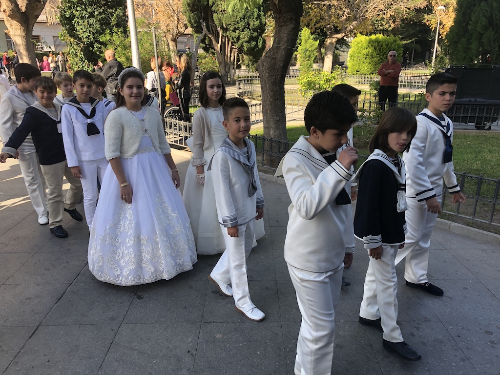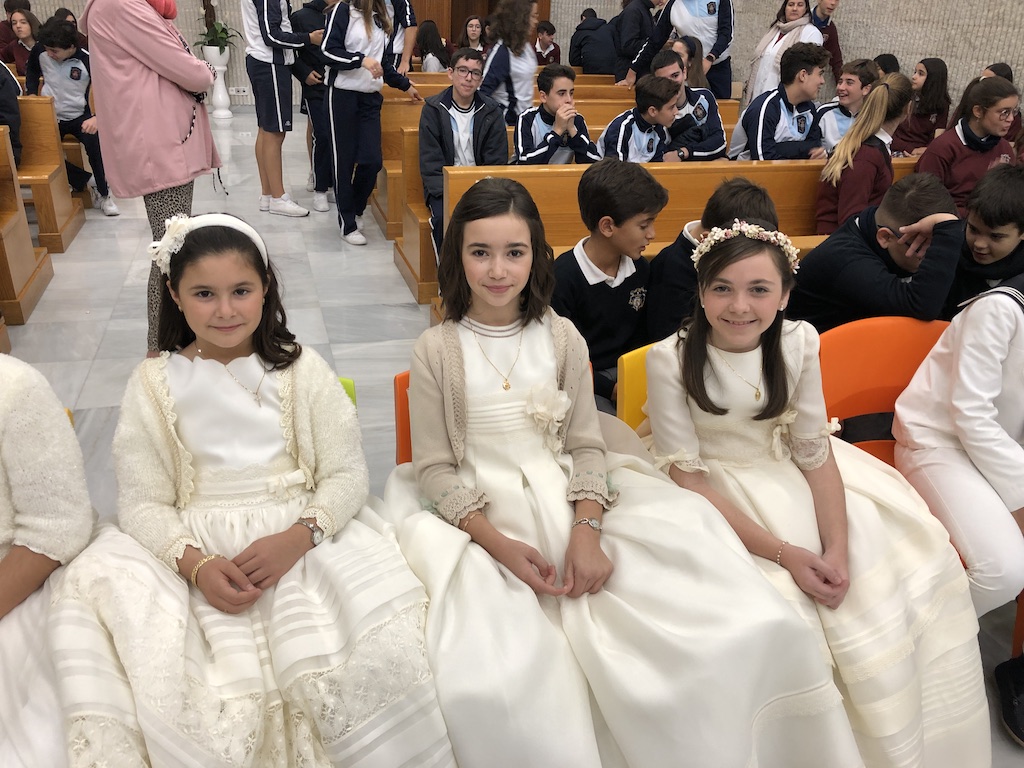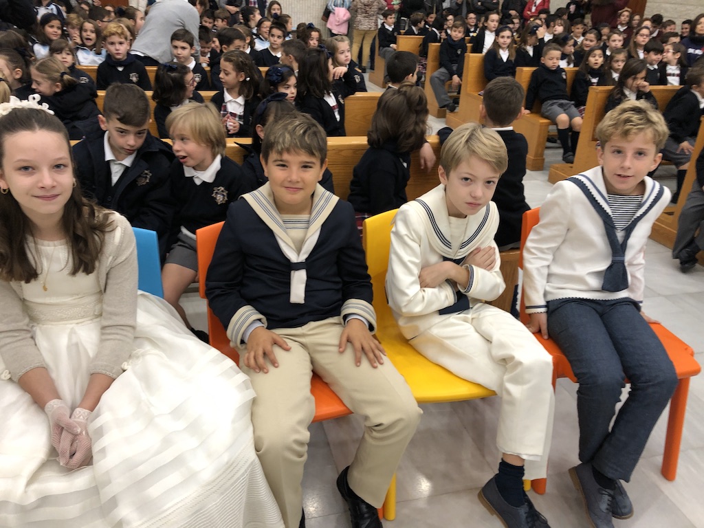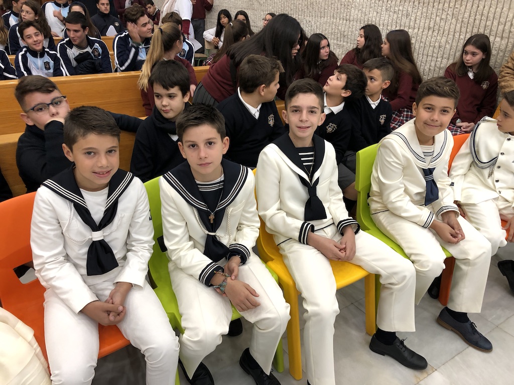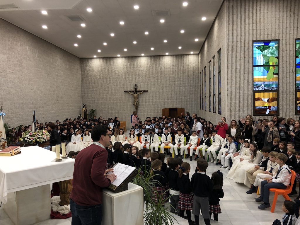 Una vez finalizado el acto en la capilla del colegio, se llevó a cabo una solemne procesión donde la Virgen, al son de los tambores, estuvo acompañada por los niños de primera comunión de nuestro colegio y por toda la comunidad educativa.