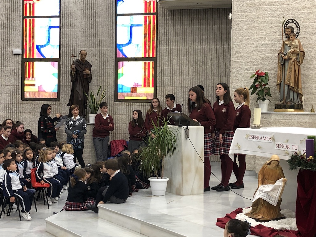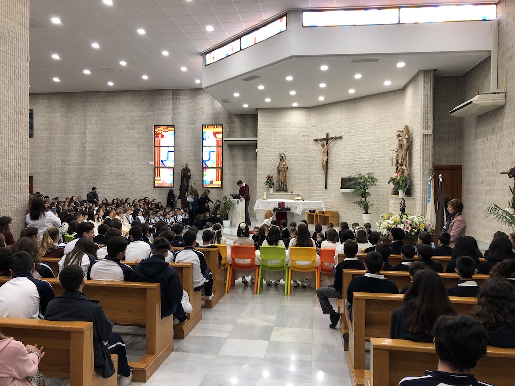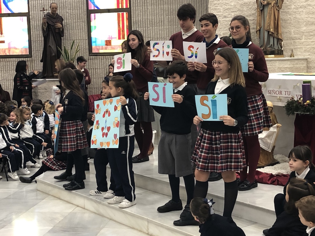 Por otro lado, y acompañado de una lectura de la Anunciación, los alumnos de Educación Primaria y Educación Secundaria ofrecieron imágenes de un Sí que mantenía el significado de aceptación. Igual que María llevo a cabo la palabra de Dios, nosotros también queremos responder positivamente a la llamada de Dios.