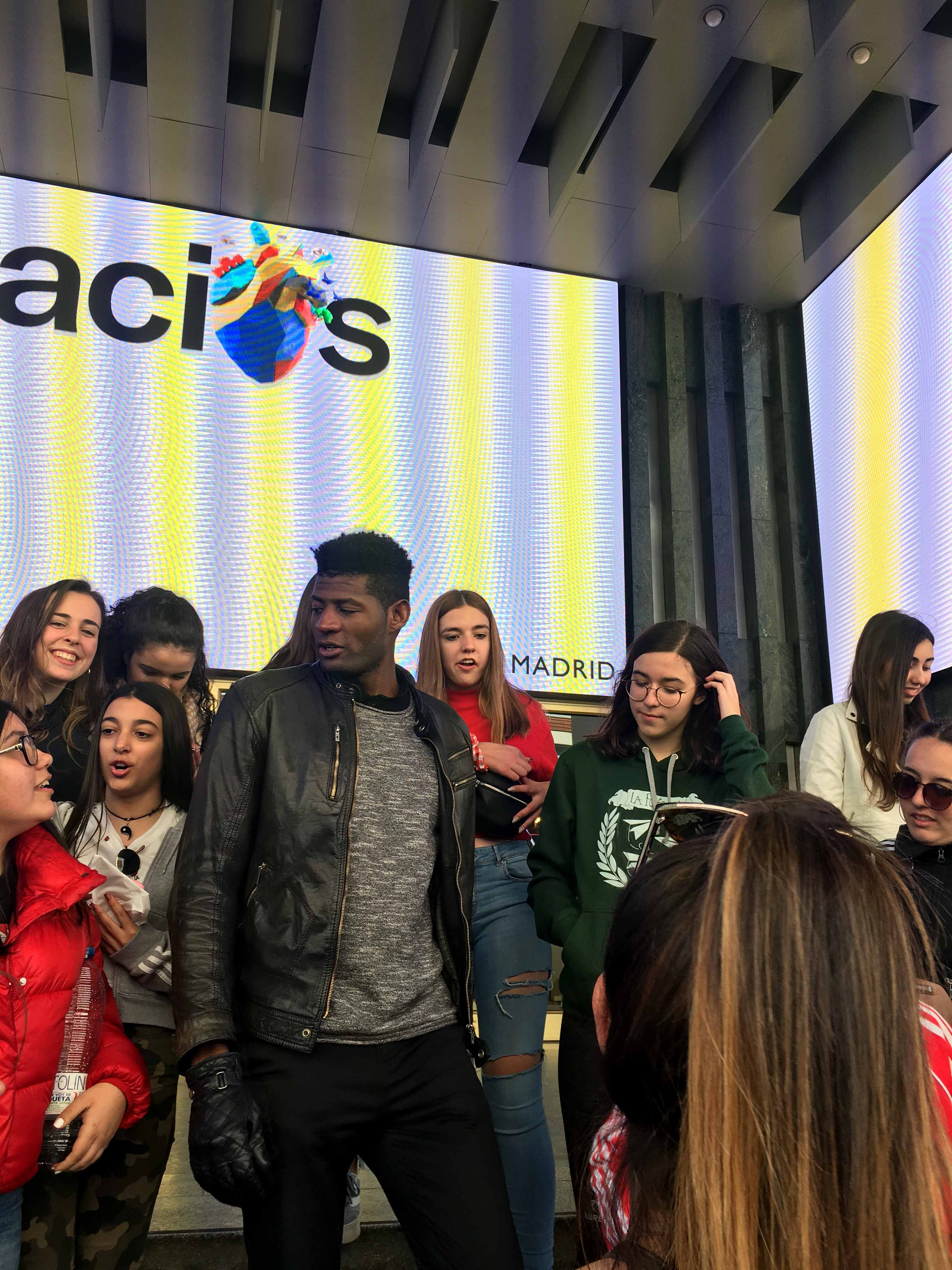 Un tiempo de disfrutar de la naturaleza paseando por El Retiro y el Real Jardín Botánico, del deporte compitiendo en el Carlos Sainz Center y Snowzone y una entrada por todo lo grande en el césped del Bernabeu, de la cultura visitando y gozando de los cuadros del Prado, sintiendo la música con “El Rey León” y conociendo la historia en el Palacio Real. El Museo de Cera fue todo un descubrimiento por la gran cantidad de personalidades y personajes allí representados. Paseamos por las puertas de Alcalá y del Sol, la Plaza Mayor, el Teatro Real, las fuentes de Neptuno y Cibeles, el Congreso de los Diputados, el Senado y Gran Vía, donde coincidimos con varios estrenos y diversidad de actores, quienes se fotografiaron con nosotros. Y también tuvimos la gran fortuna de conocer a Ricardo Nkosi, actor que interpreta a Mufasa en el musical del Rey León, a quien cogimos mucho cariño por su gran amabilidad hacia nosotros. Compartimos y convivimos grandes momentos entre tod@s, y hasta practicamos el inglés con los japoneses.